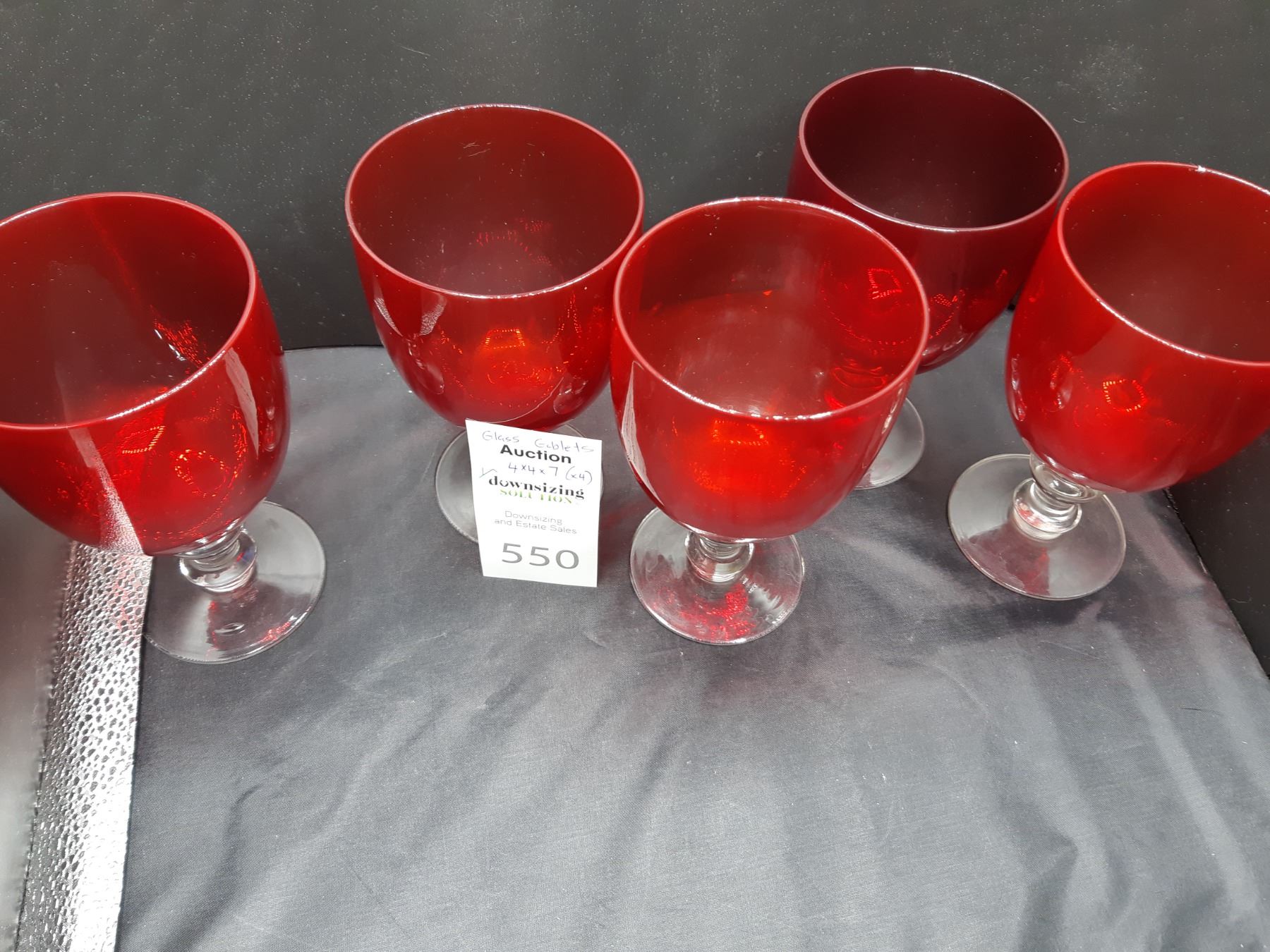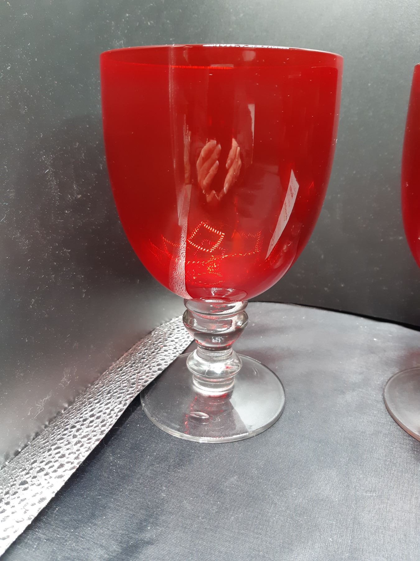 5x red and clear glass stem goblets. Bring packing material and pickup at 9 am