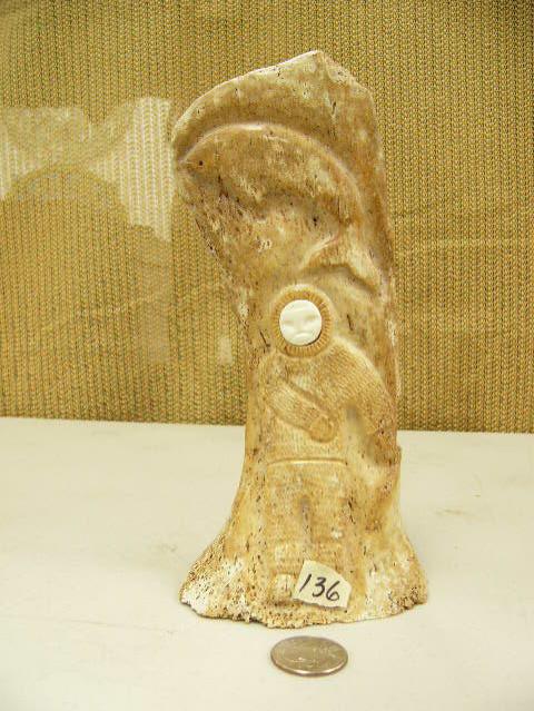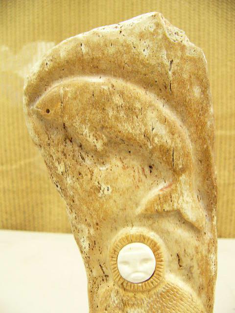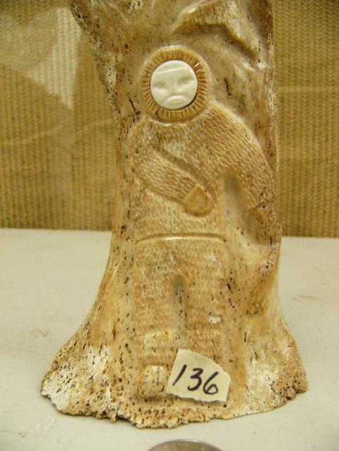 Relief carved whale bone of hunter and whales and eagle by Davis Uglonook (2)