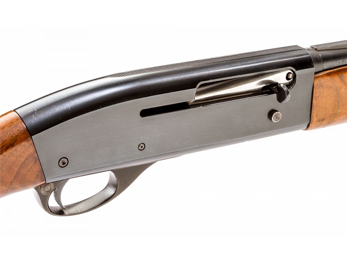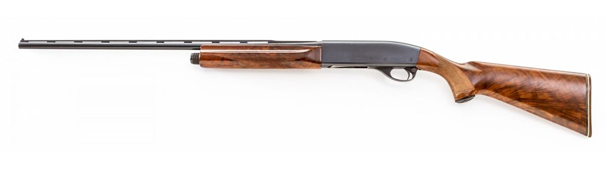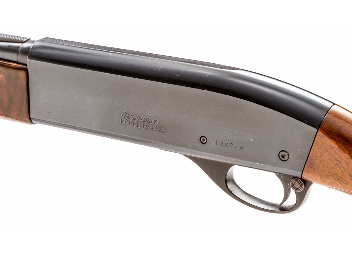 Remington Model 11-48SC Semi-Automatic Shotgun, #4120746, .410 ga., 25'' vent rib barrel for 3'' or shorter shells, choked Skeet, blue finish, fancy ''C Grade'' checkered walnut stock, with Whiteline brown rubber butt pad. Condition is fine to near excellent retaining approx. 96% lightly thinning blue with micro-scratching to flat sides of receiver. Stock with light scuffs and minor flattening to checks. Action is crisp, bore is bright. Est.: $750-$1,000. (Modern)