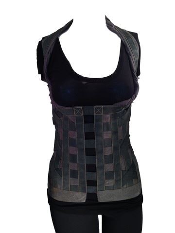 Alice (Milla Jovovich) screen worn, stunt #101, black yoga pants, black tee shirt "T Babaton" and "famous Alice vest" custom made muted silver/grey vest with broken zipper with black "Aldo" wedge boots. This costume is from the opening scene and was also worn in Resident Evil: Afterlife. In that film, this was Alice's main costume, worn throughout the movie and the last costume of this kind known to be available for auction.