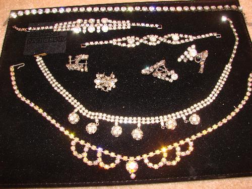 Rhinestones galore-3 necklaces,2 bracelets,4 pr.ears