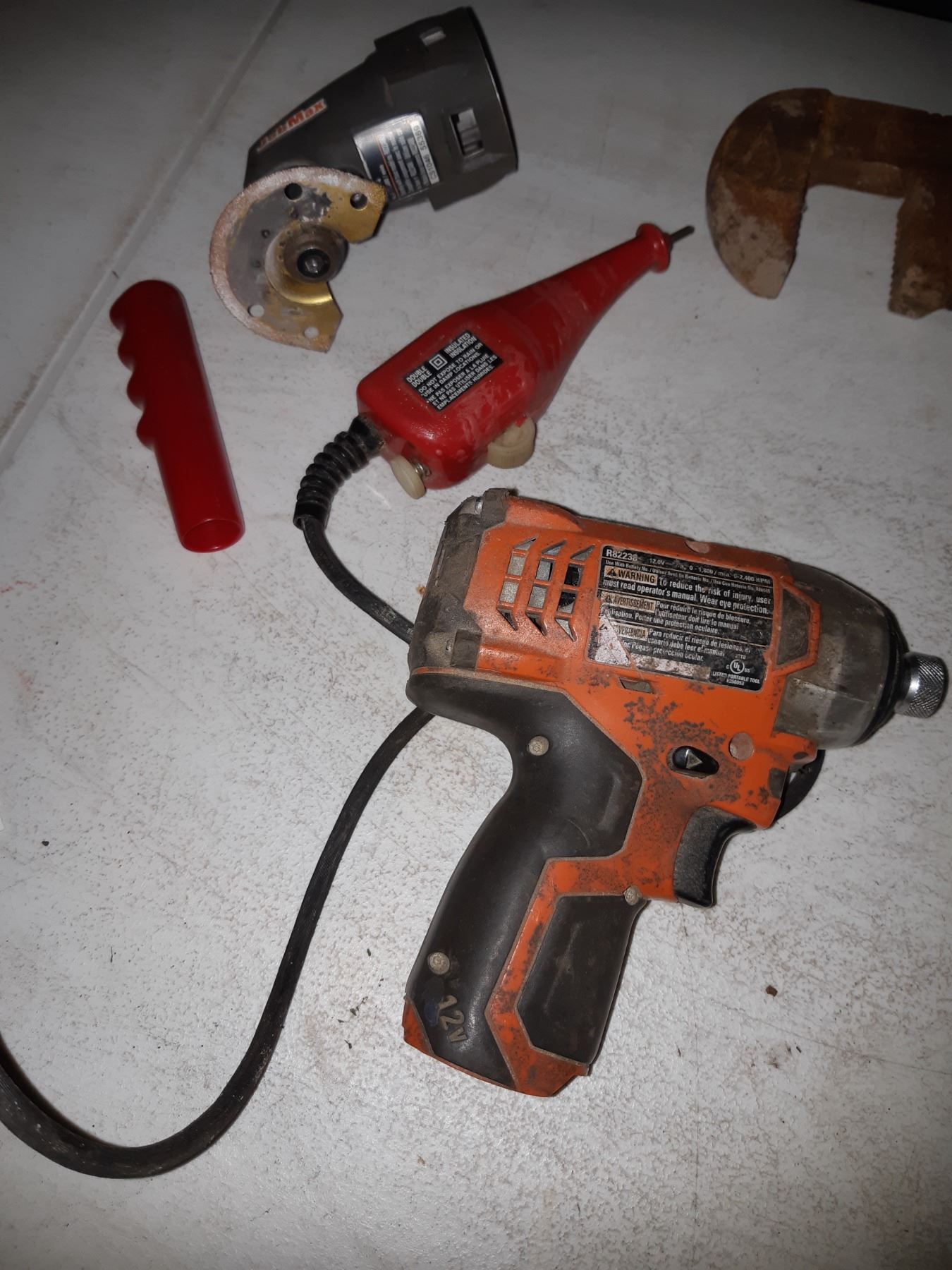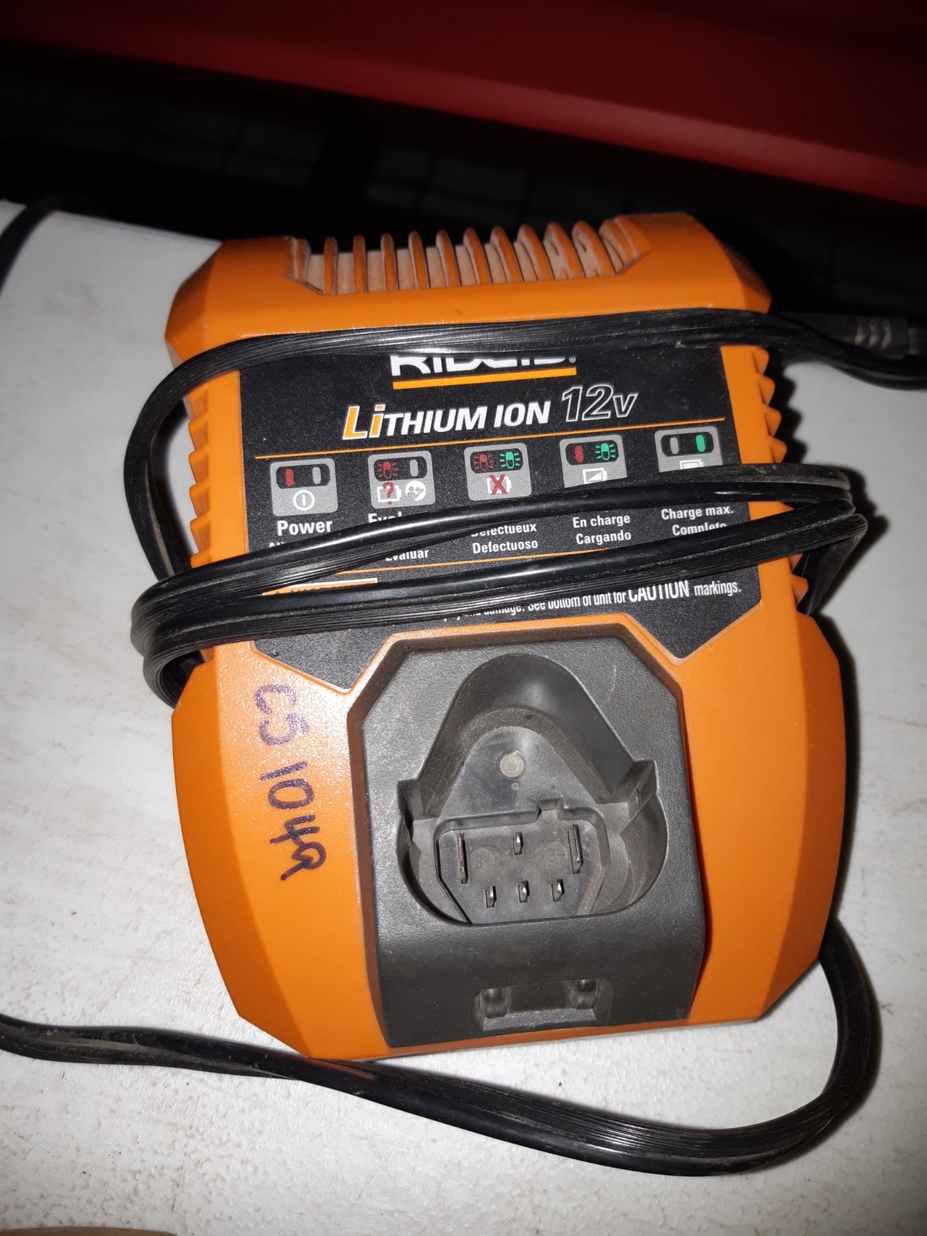 Assortment of Rigid tools plus charger, no battery. Plus more. Untested Pickup at 10 am