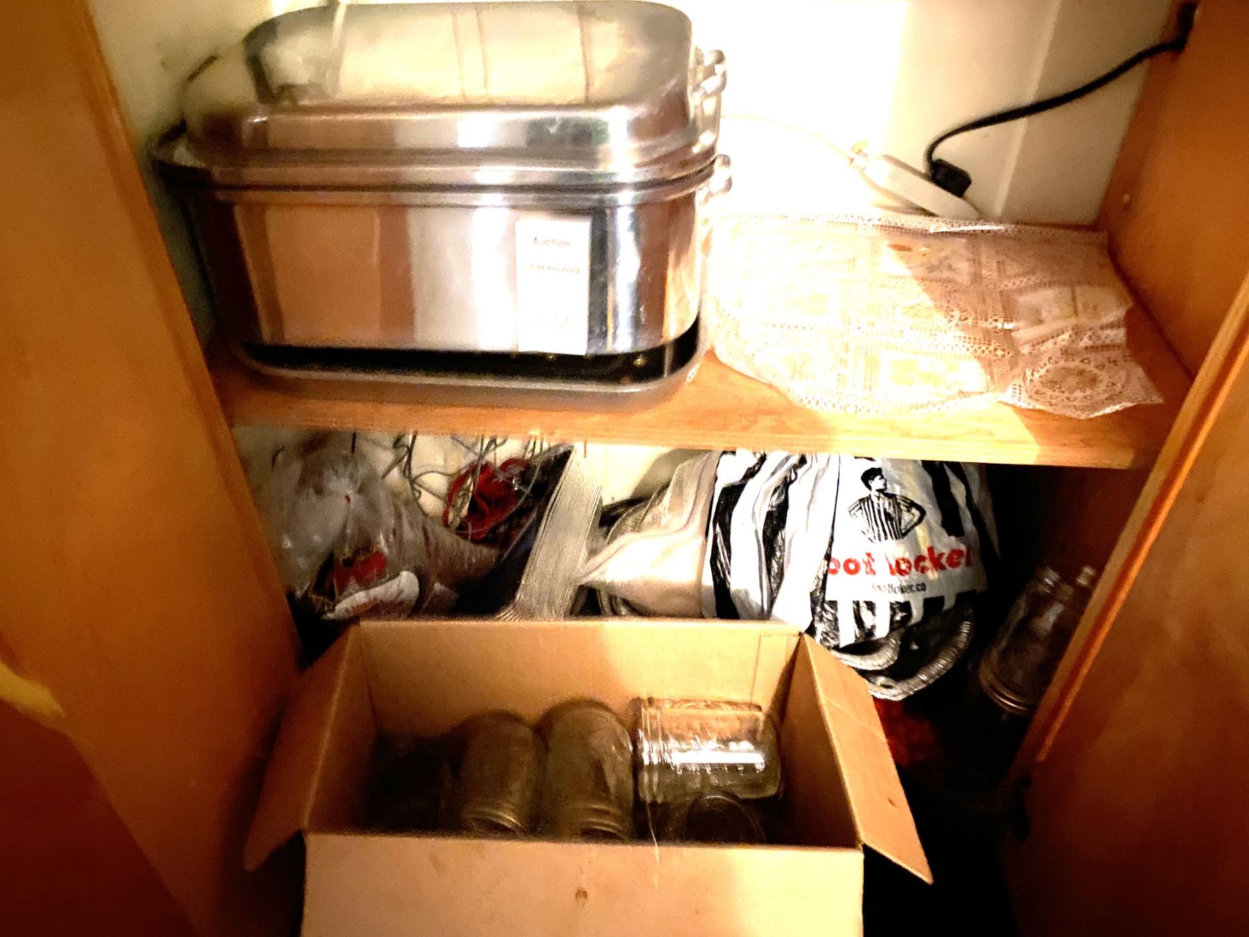 Stainless roasting pan, large assortment of canning jars. Pickup at 10 am