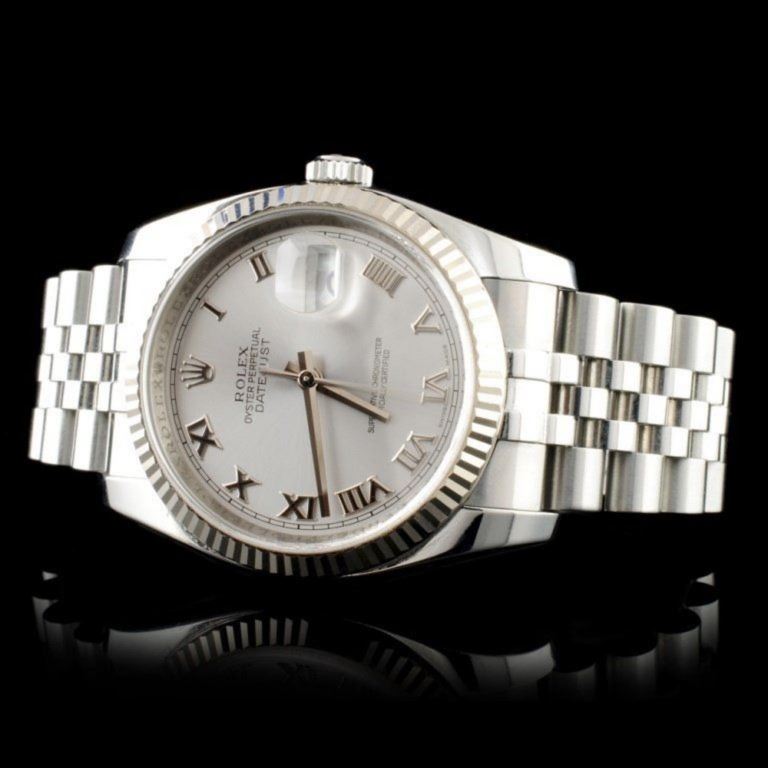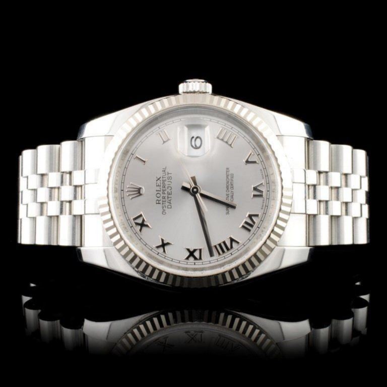 Dial: Rolex Signature Rhodium Dial with Silver Roman Numerals