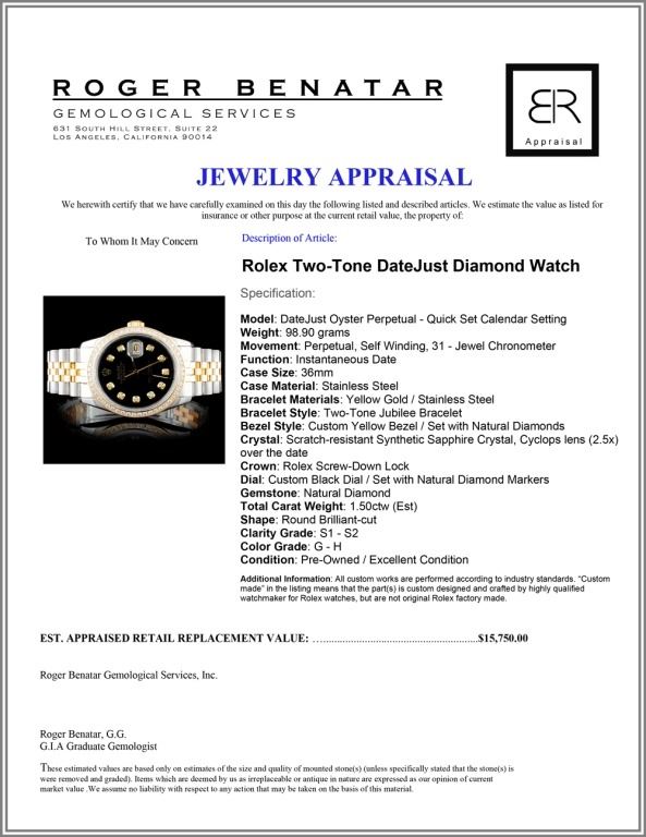 Dial: Custom Black Dial / Set with Natural Diamond Markers
