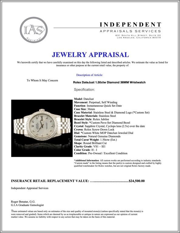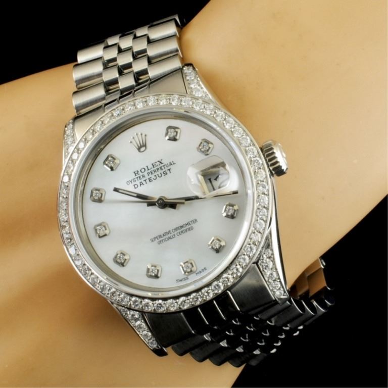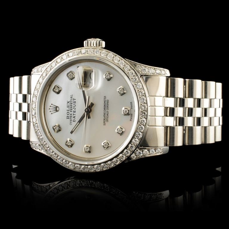 Dial: *Custom White MOP DateJust Jeweled Dial