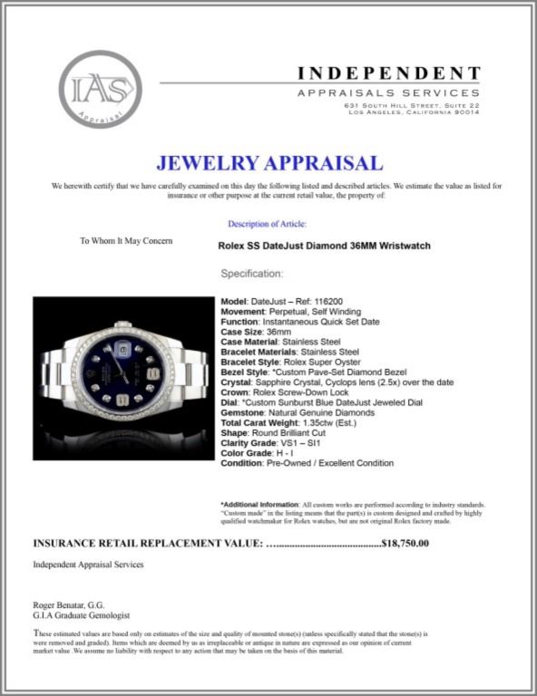 Regarding Appraised Jewelry and Loose Stones - Auctionfarm sends them out to a third party for Retail Replacement Value Appraisals, which are the most common. These types of evaluations are written for insurance needs. This would be the cost to replace the jewelry with an item of equal quality and kind, considered to be the current market price or the replacement value. This type of appraisal is done to protect you in the event of damage or loss of a valuable item. Our appraisals are conducted by independent 3rd Party appraisal firms that utilizes Certified GIA Gemologist. Appraisals should be used for verification of gemstone and/or metal weight, size, and grade only, not actual value. Appraisal value should be considered for insurance purposes only, not actual value, as price varies greatly from retail locations thru out the world. Items should not be purchased with the expectation to resell for appraisal price, or for profit.
