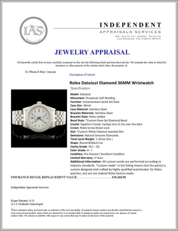 Estimated Retail Replacement Value: $18,360.00Ref: WAG16000Item No.: ARXAA-0023Specification:Model: DateJust