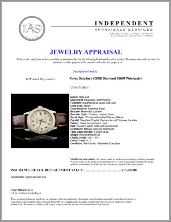 Regarding Appraised Jewelry and Loose Stones - Auctionfarm sends them out to a third party for Retail Replacement Value Appraisals, which are the most common. These types of evaluations are written for insurance needs. This would be the cost to replace the jewelry with an item of equal quality and kind, considered to be the current market price or the replacement value. This type of appraisal is done to protect you in the event of damage or loss of a valuable item. Our appraisals are conducted by independent 3rd Party appraisal firms that utilizes Certified GIA Gemologist. Appraisals should be used for verification of gemstone and/or metal weight, size, and grade only, not actual value. Appraisal value should be considered for insurance purposes only, not actual value, as price varies greatly from retail locations thru out the world. Items should not be purchased with the expectation to resell for appraisal price, or for profit.