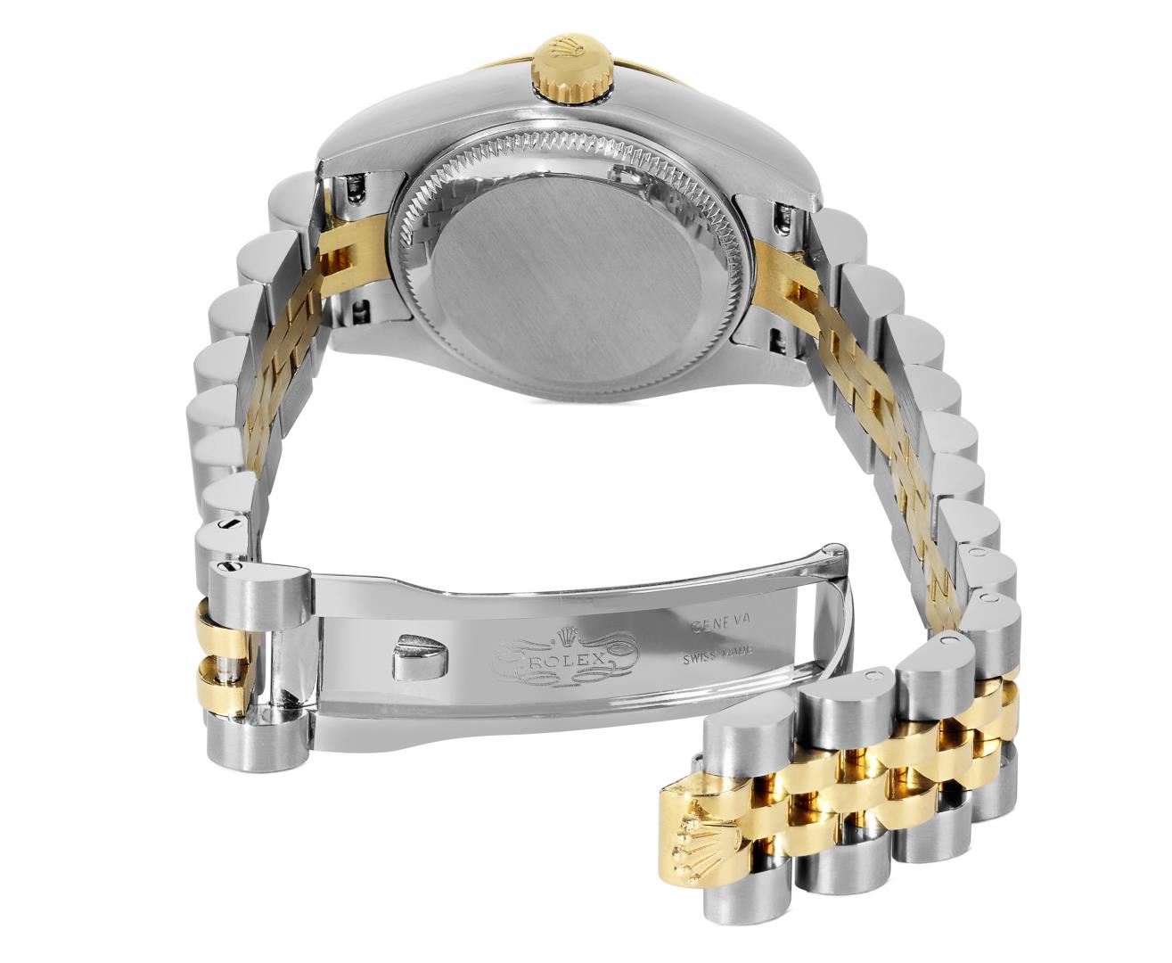 One Rolex Ladies Pre Owned Two Tone 18K Yellow Gold And Stainless Steel Rolex Datejust Polished, Serviced & Electronically Tested, Rolex Yellow Gold And Stainless Steel Case: 26mm, Rolex Yellow Gold Crown. Rolex 18K Yellow Gold Fluted Bezel. Crystal: Sapphire Crystal With Date Window. Hands: Solid Hands. Rolex Movement: 2235 Automatic Winding Movement. Rolex Factory Dial: Factory White Roman Dial. Date Window: 3 O'Clock Position Date Display, Condition: G-6 Extra Fine. Rolex Bracelet: Two Tone 18K Yellow Gold And Stainless Steel Jubilee Band. Bright Polish And Satin Finish. 6.0 Inch Length, Adjustable. Hidden Clasp, With Rolex Logo. This Watch Has Been Serviced Time Tested And Is In Excellent Condition It Is Free Of All Scratches And Dents. This Watch Comes With A Rolex Box.