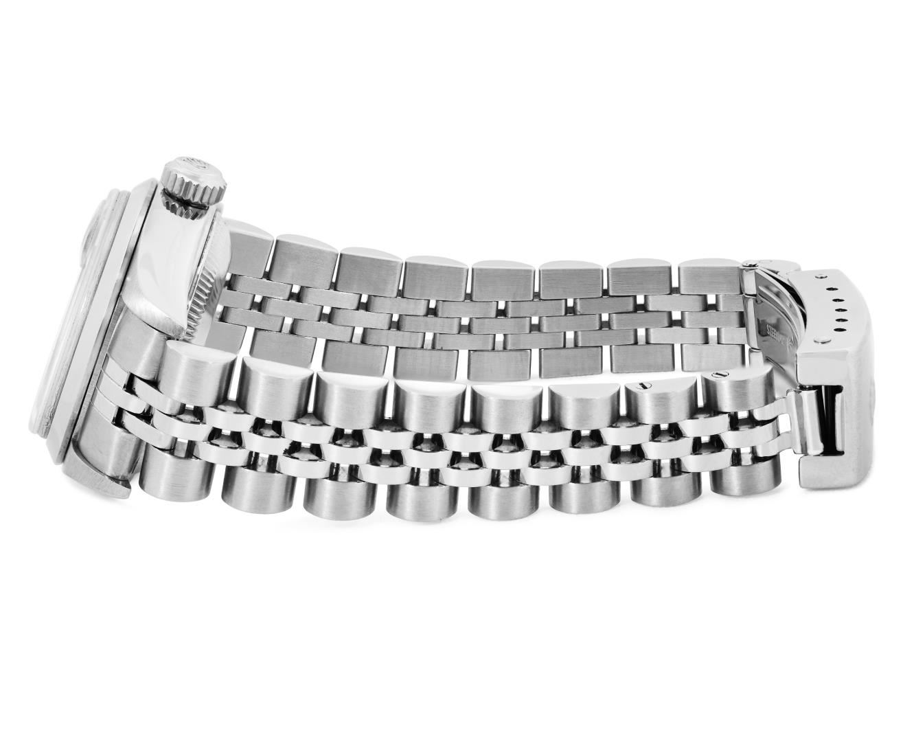 Rolex Ladies Stainless Steel Black Index Dial Stainless Steel Bezel Jubilee Band
