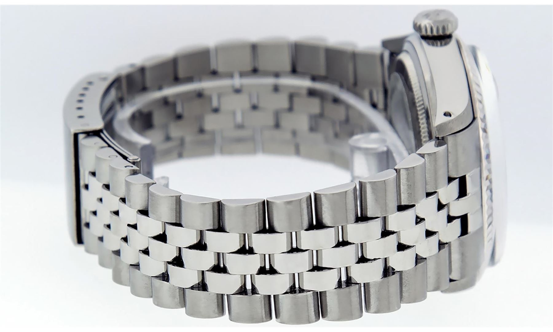 One Mens Pre Owned Stainless Steel Rolex Datejust Polished, Serviced & Electronically Tested, Rolex Stainless Steel Case: 36mm, Rolex Stainless Steel Crown, Rolex Bezel: 14K White Gold Fluted Bezel. Custom Crystal: New Acrylic With Magnified Date Window. Hands: Luminescent Hands. Rolex Movement: Automatic Winding Movement. Rolex Dial: Silver Index With Dash Track And Lumi Dot. Date Window: 3 O'Clock Position Date Display, Quickset, Model: Datejust, Condition: G-6 Extra Fine. Rolex Bracelet: Stainless Steel Jubilee Band. Bright Polish & Satin Finish. 7.0 Inch Length, Adjustable. Standard Clasp, With Rolex Logo. This Watch Has Been Serviced Time Tested And Is In Excellent Condition It Is Free Of All Scratches And Dents.