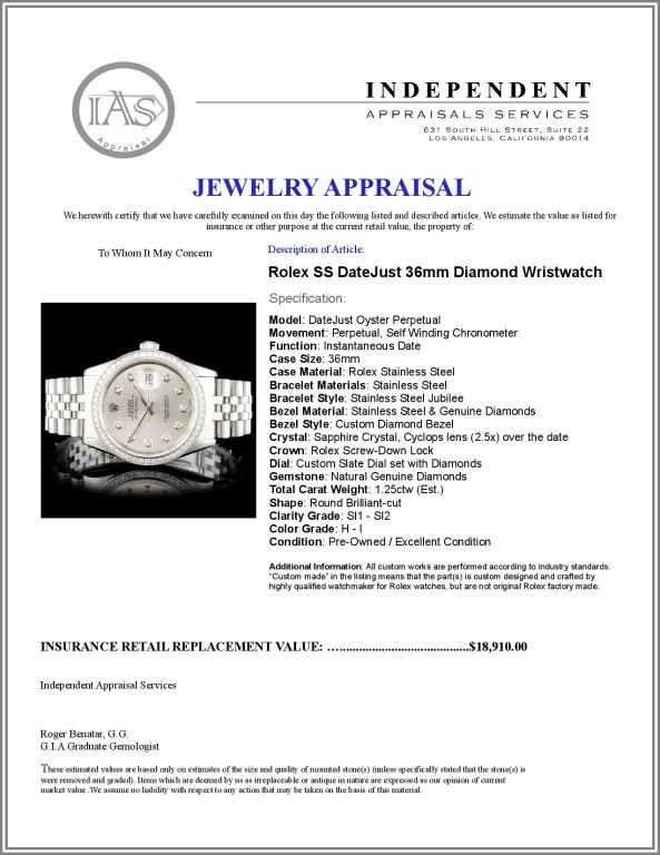 Dial: Custom Slate Dial set with Diamonds