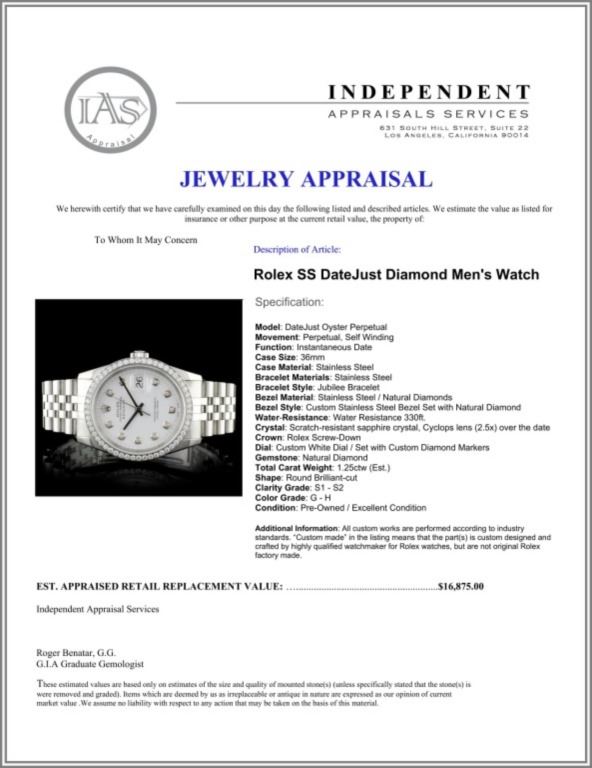 Regarding Appraised Jewelry and Loose Stones - Auctionfarm sends them out to a third party for Retail Replacement Value Appraisals, which are the most common. These types of evaluations are written for insurance needs. This would be the cost to replace the jewelry with an item of equal quality and kind, considered to be the current market price or the replacement value. This type of appraisal is done to protect you in the event of damage or loss of a valuable item. Our appraisals are conducted by independent 3rd Party appraisal firms that utilizes Certified GIA Gemologist. Appraisals should be used for verification of gemstone and/or metal weight, size, and grade only, not actual value. Appraisal value should be considered for insurance purposes only, not actual value, as price varies greatly from retail locations thru out the world. Items should not be purchased with the expectation to resell for appraisal price, or for profit.