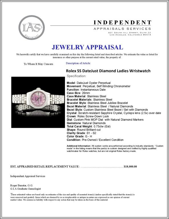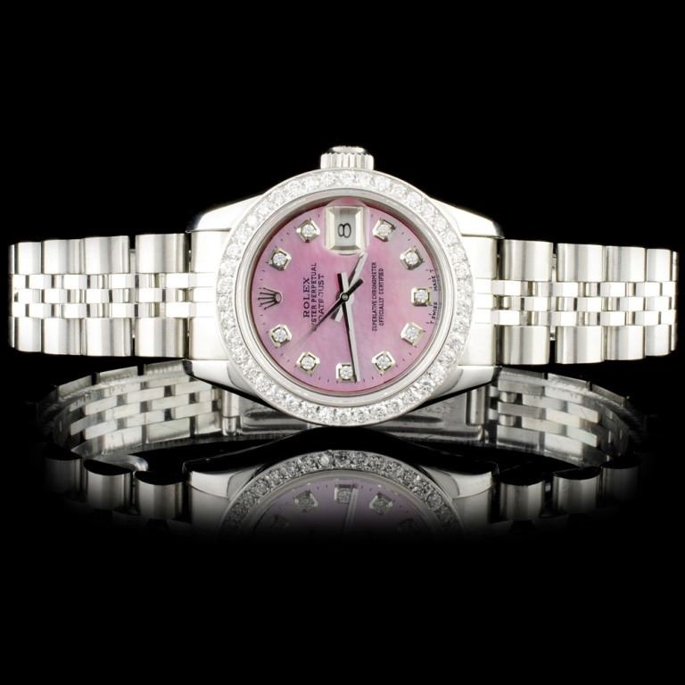 Dial: Custom Pink MOP Dial with Natural Diamond Markers