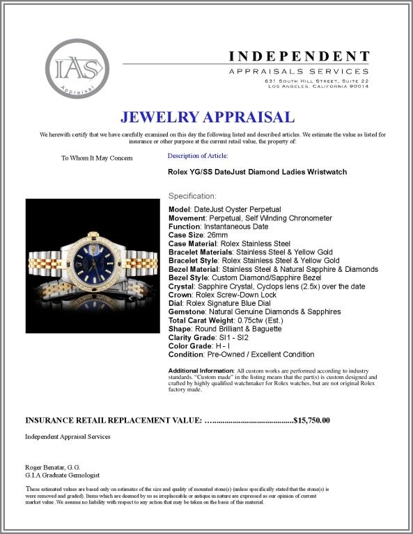 Regarding Appraised Jewelry and Loose Stones - Auctionfarm sends them out to a third party for Retail Replacement Value Appraisals, which are the most common. These types of evaluations are written for insurance needs. This would be the cost to replace the jewelry with an item of equal quality and kind, considered to be the current market price or the replacement value. This type of appraisal is done to protect you in the event of damage or loss of a valuable item. Our appraisals are conducted by independent 3rd Party appraisal firms that utilizes Certified GIA Gemologist. Appraisals should be used for verification of gemstone and/or metal weight, size, and grade only, not actual value. Appraisal value should be considered for insurance purposes only, not actual value, as price varies greatly from retail locations thru out the world. Items should not be purchased with the expectation to resell for appraisal price, or for profit.