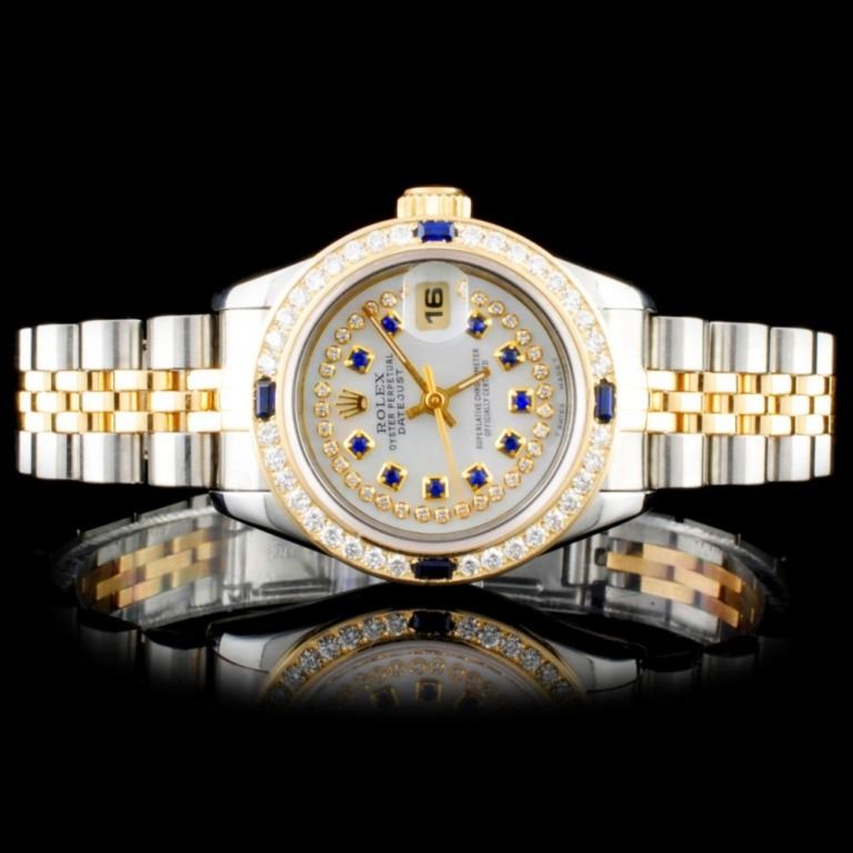 Dial: Custom White MOP Dial Set with Diamonds & Sapphire Markers