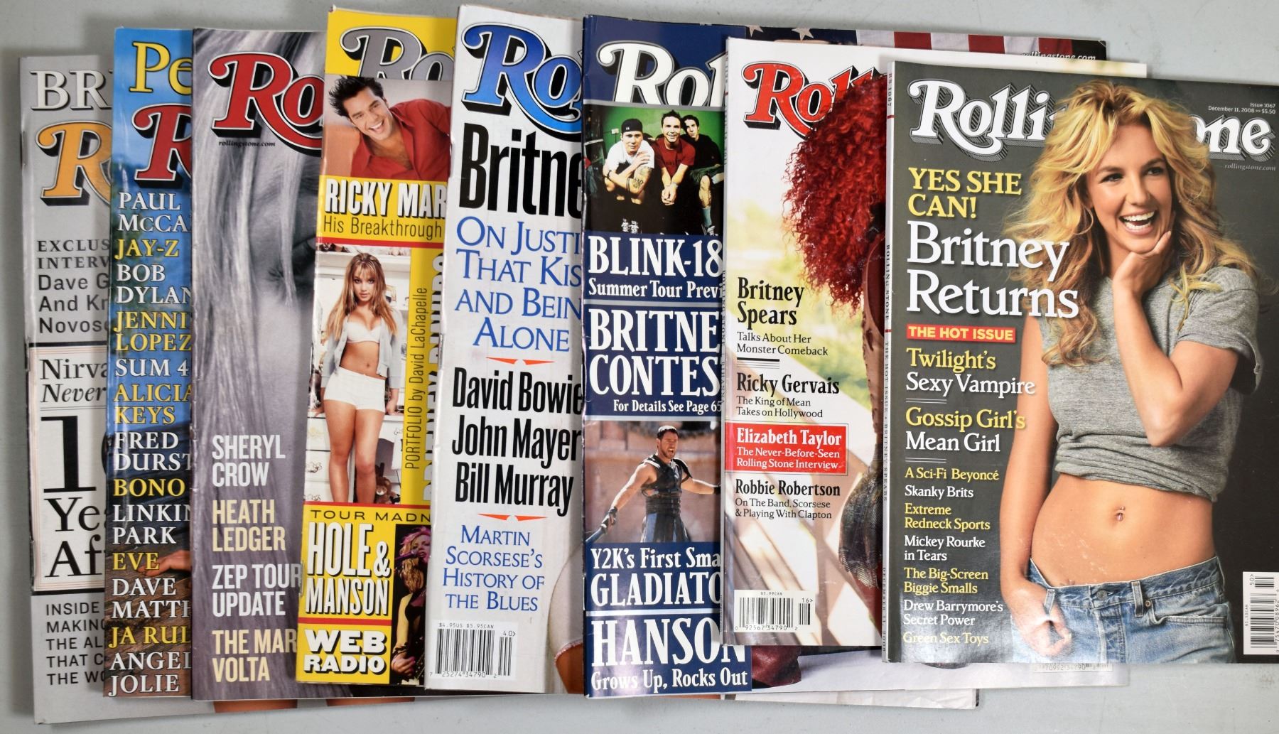 Lot of 8 Rolling Stone Magazines; Britney Spears, Rihanna; used condition, sold as is