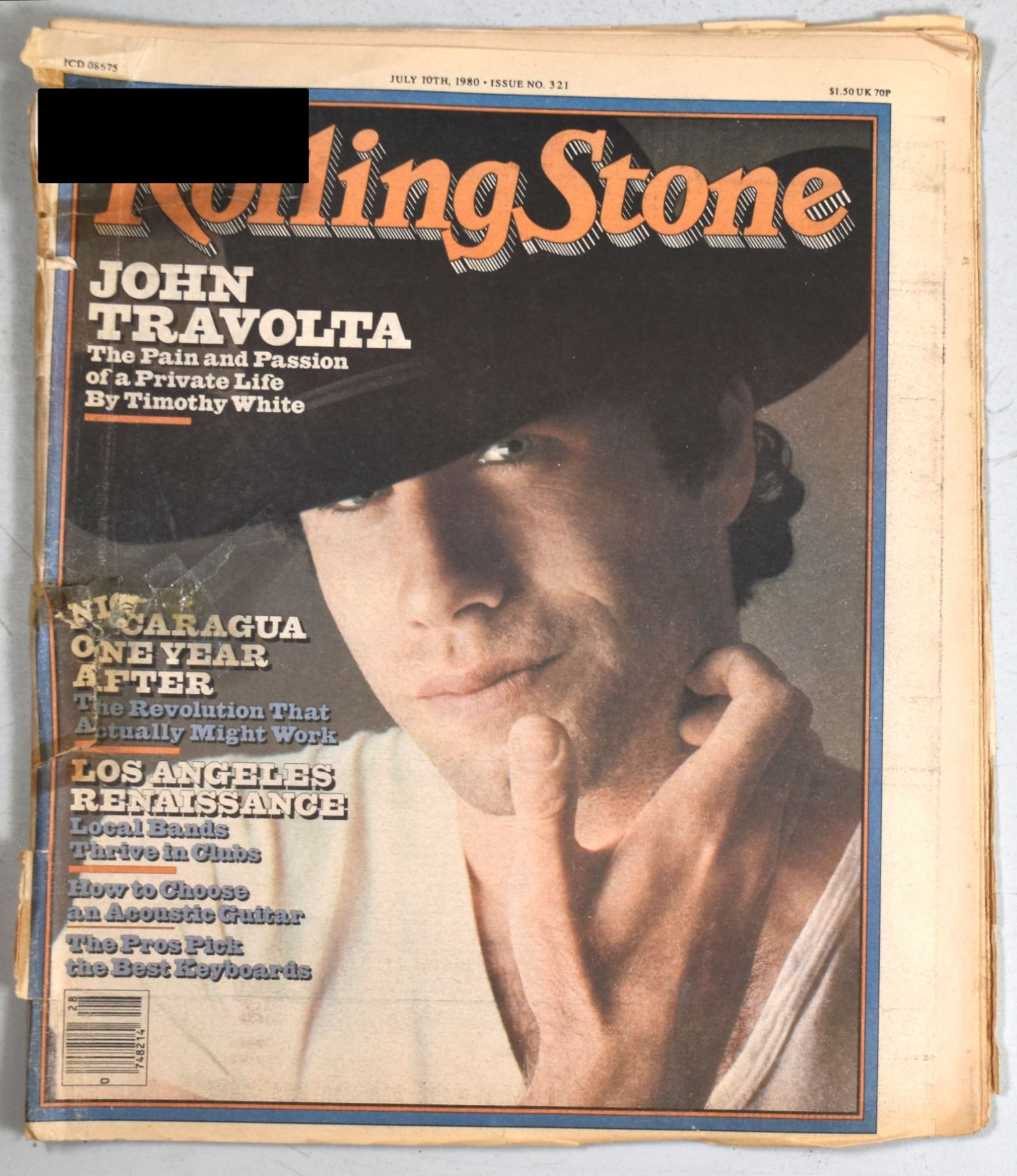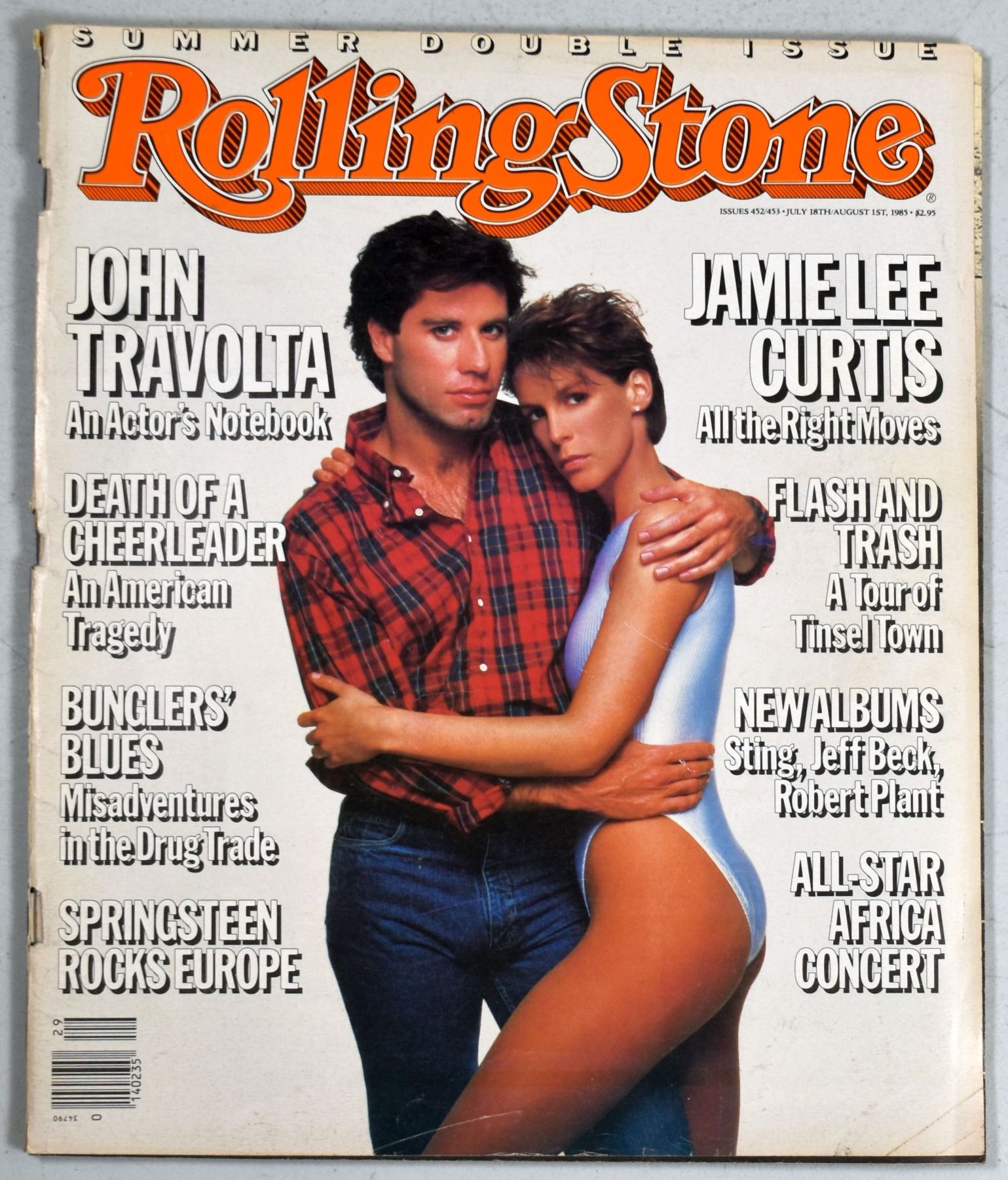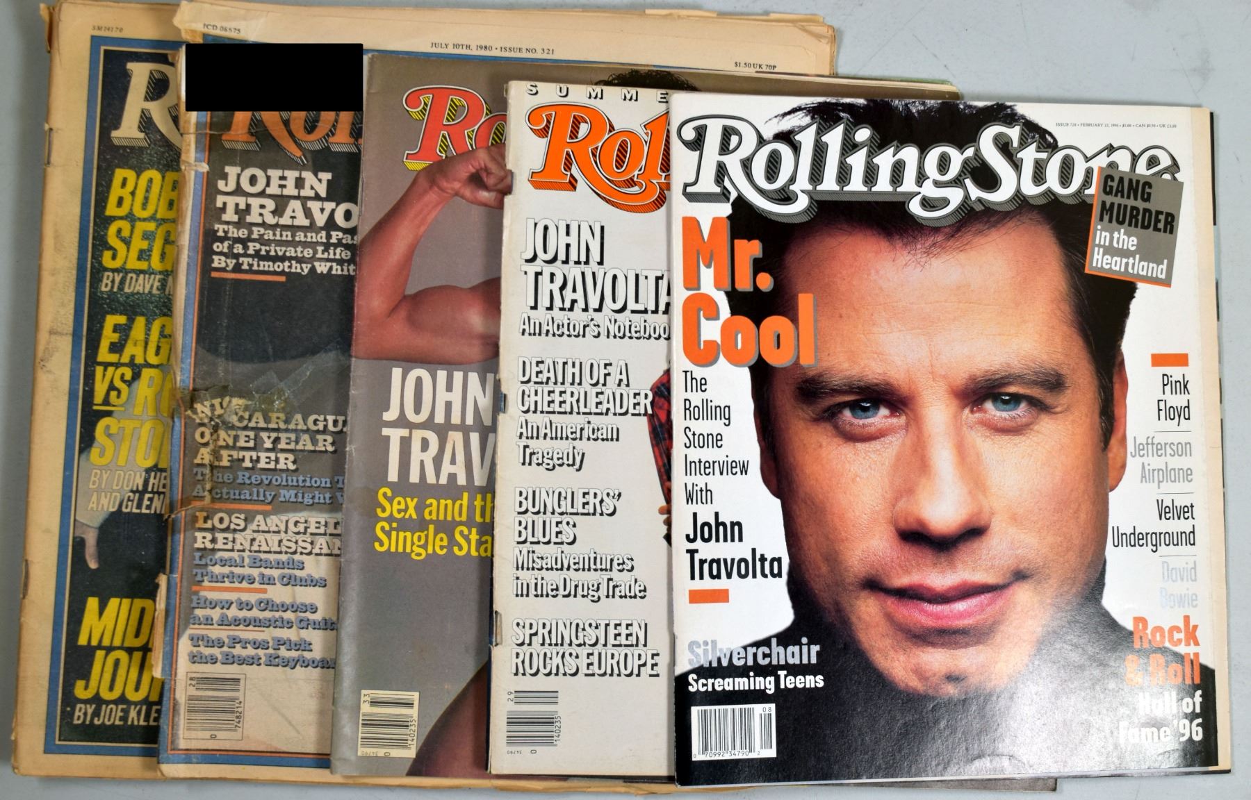 Lot of 5 Rolling Stone Magazines; John Travolta, Jamie Lee Curtis; used condition, sold as is