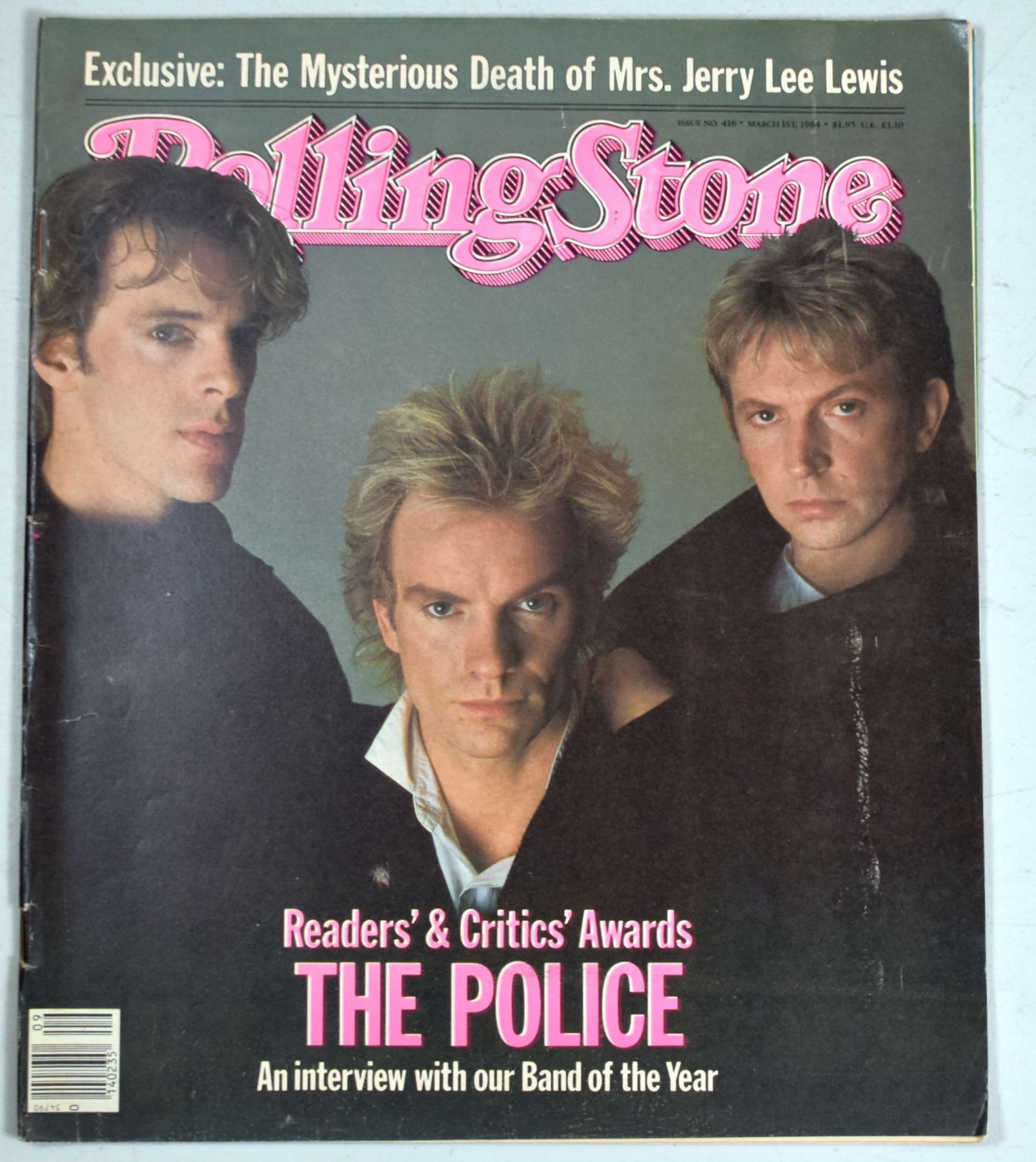 Lot of 9 Rolling Stone Magazines; Sting, The Police, Drew Barrymore; used condition, sold as is