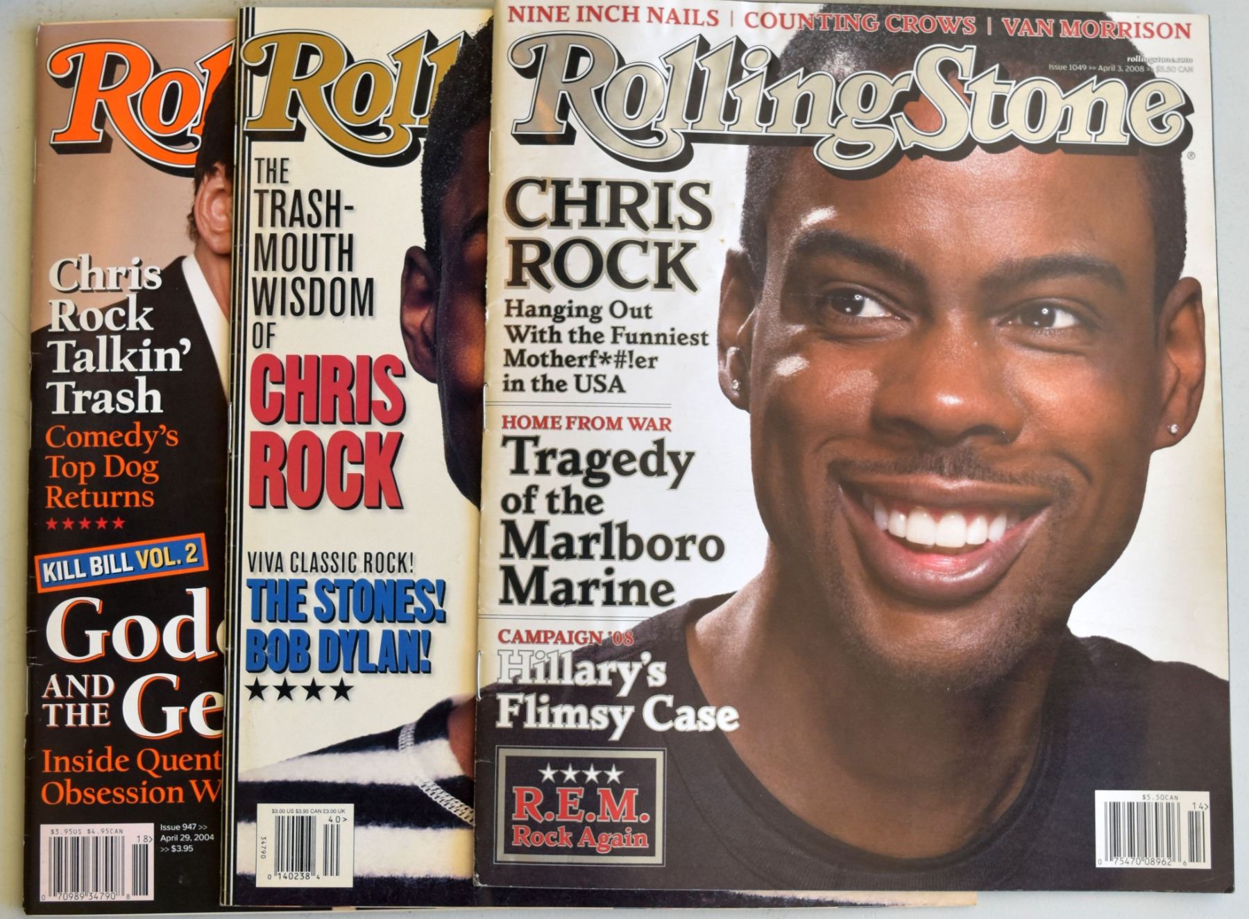 Lot of 3 Rolling Stone Magazines; Chris Rock, Uma Thurman & Quentin Tarantino; used condition, sold as is