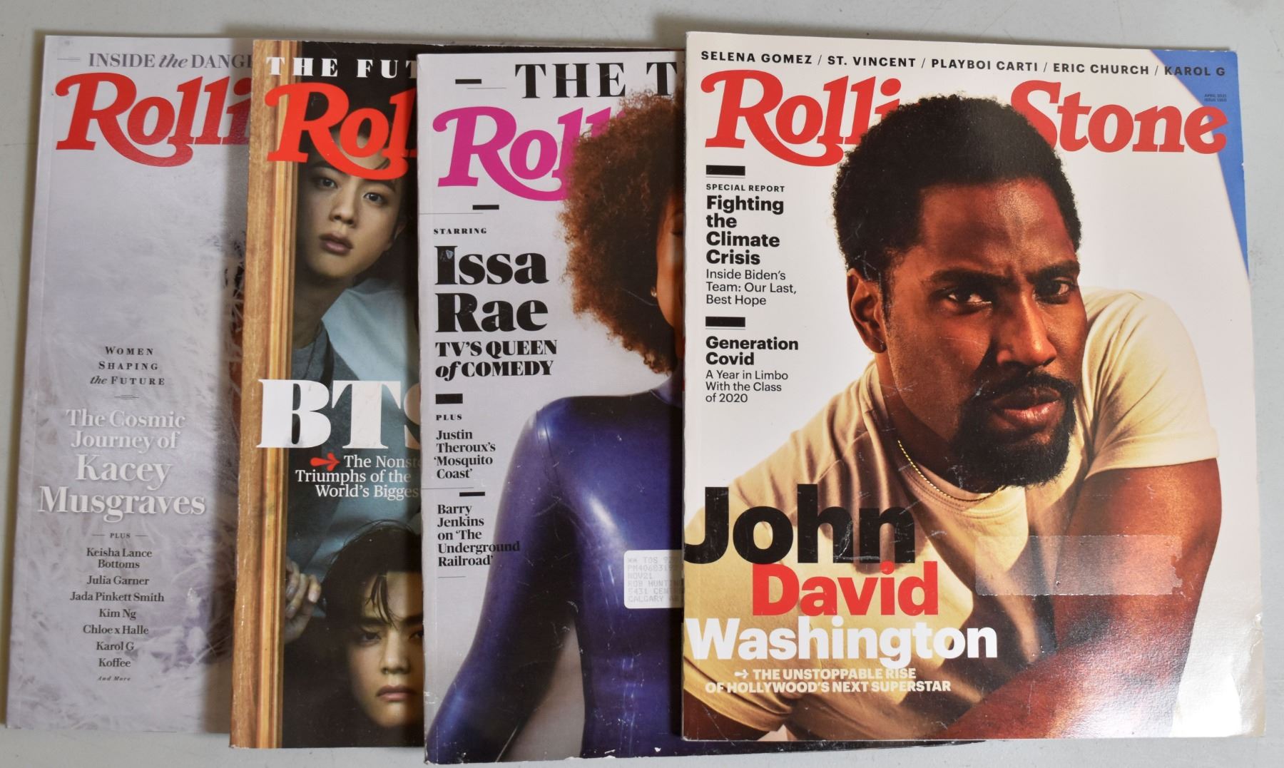 Lot of 4 Rolling Stone Magazines; Kacey Musgraves, John David Washington, Issa Rae, BTS; used condition, sold as is