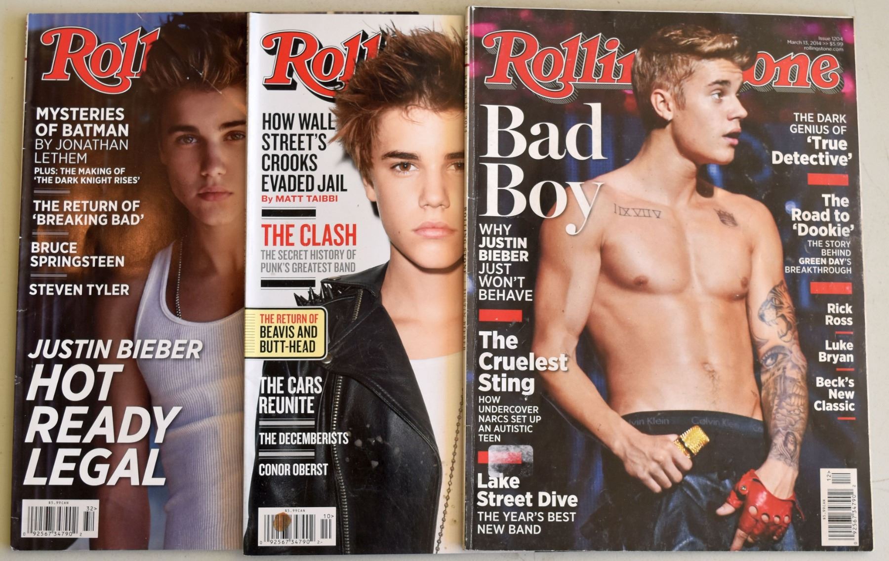Lot of 3 Rolling Stone Magazines; Justin Bieber; used condition, sold as is