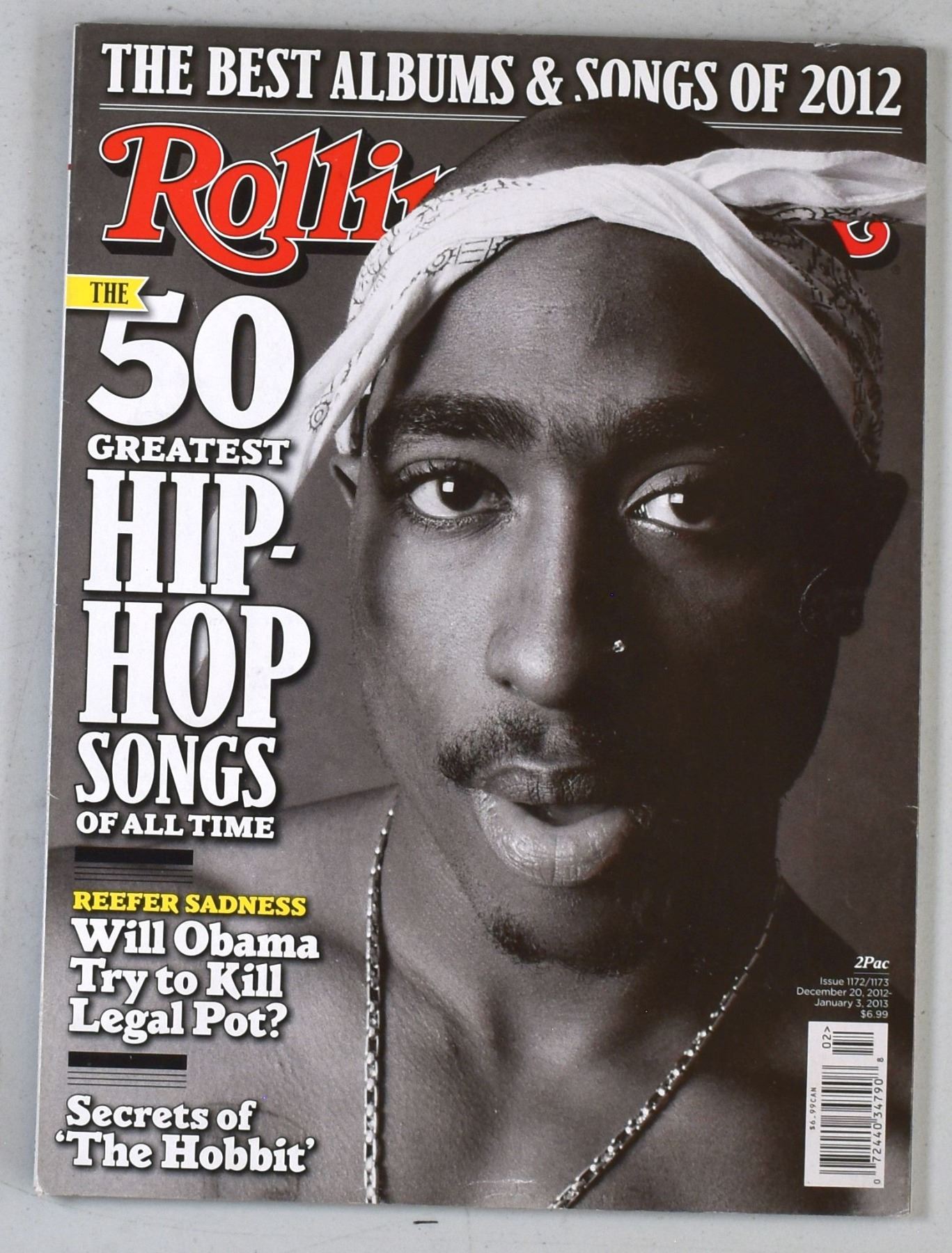 Lot of 5 Rolling Stone Magazines; 2Pac Shakur, Notorious B.I.G.; Includes issues withBeck, Dwayne Johnson, No Doubt; used condition, sold as is