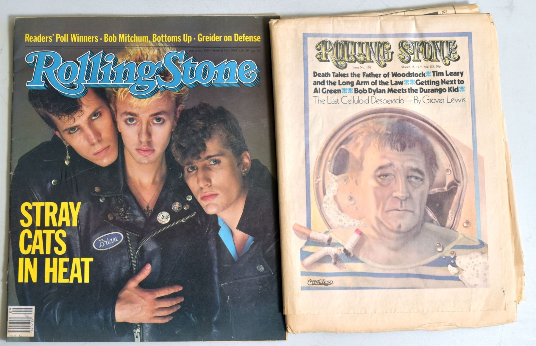 Lot of 2 Rolling Stone Magazines; Stray Cats, Robert Mitchum; used condition, sold as is