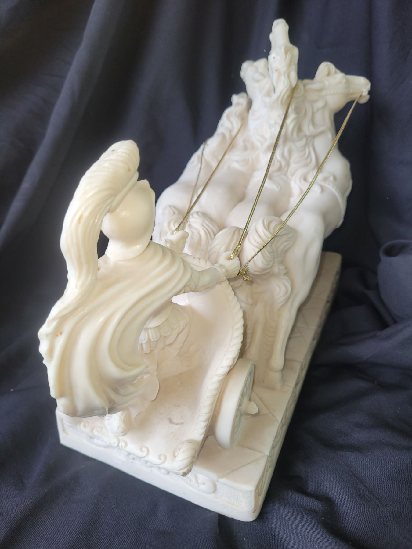 Made of resin, Roman Gladiator & horse drawn chariot 14x10. SC2 Pickup at 9 am