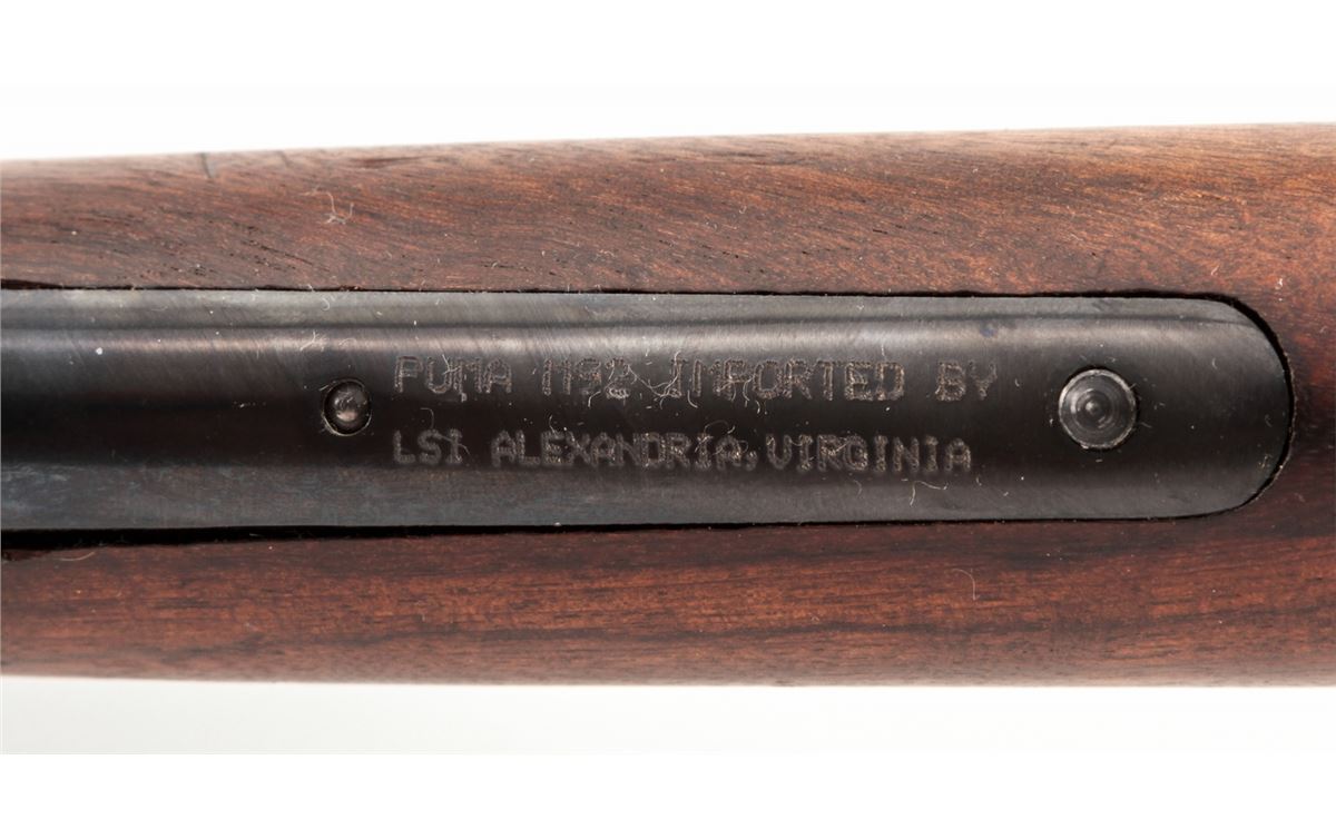 Rossi Puma M92 Lever Action Rifle, #K221212, .38/.357 mag. cal., 24'' blue octagonal barrel, case hardened frame, walnut stock and forend. Condition is excellent showing light marks from handling and minor impressions to stock. Crisp action mirror bright bore. Est.: $300-$500. (Modern)