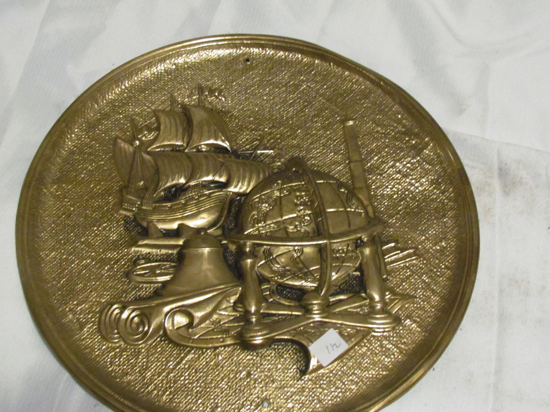 Round Brass Plate - Ship and Globe