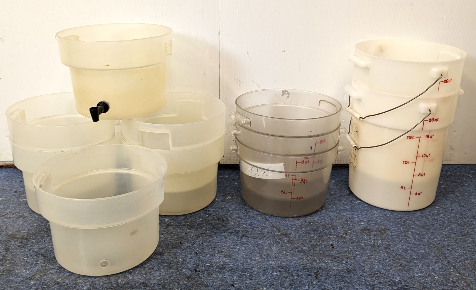 [Heavily Used,] 12qt Clear-3pcs, 20qt White-2pcs, 12qt Beverage Dispenser-6pcs