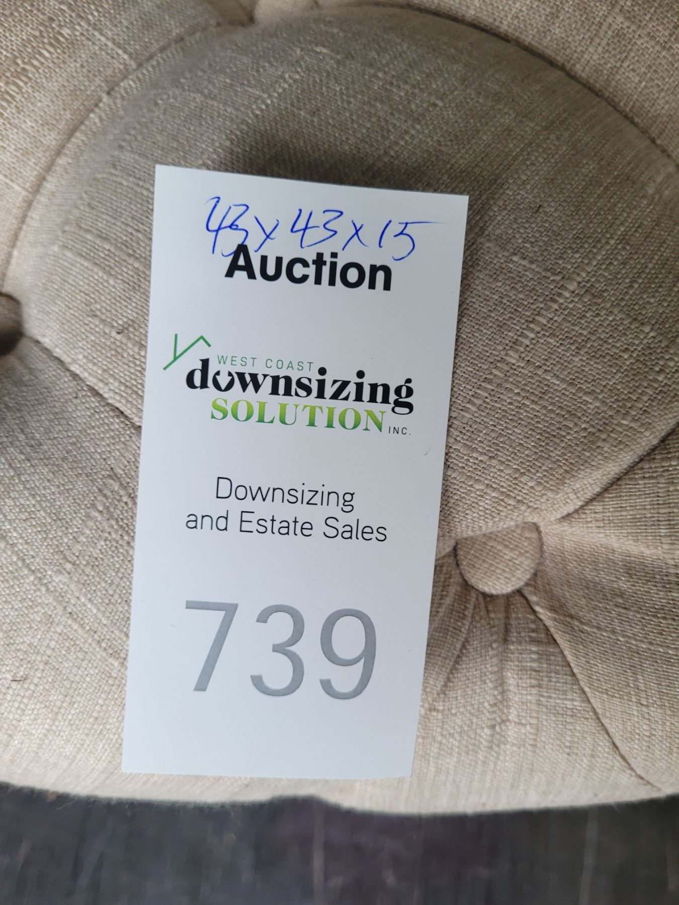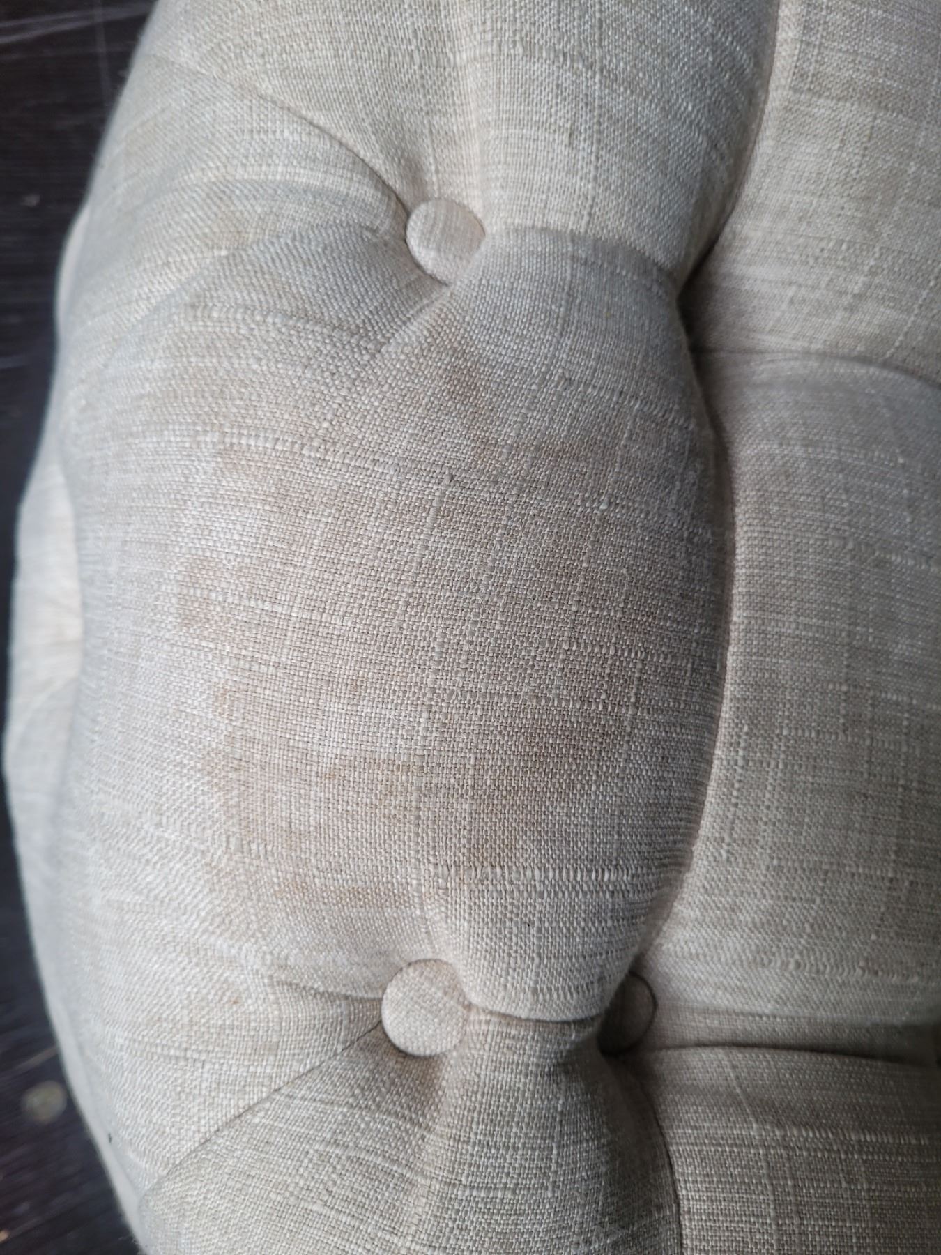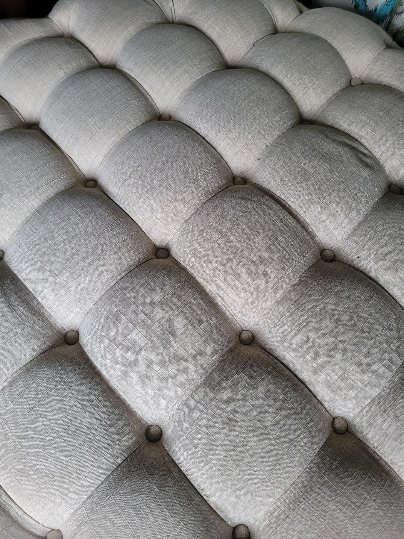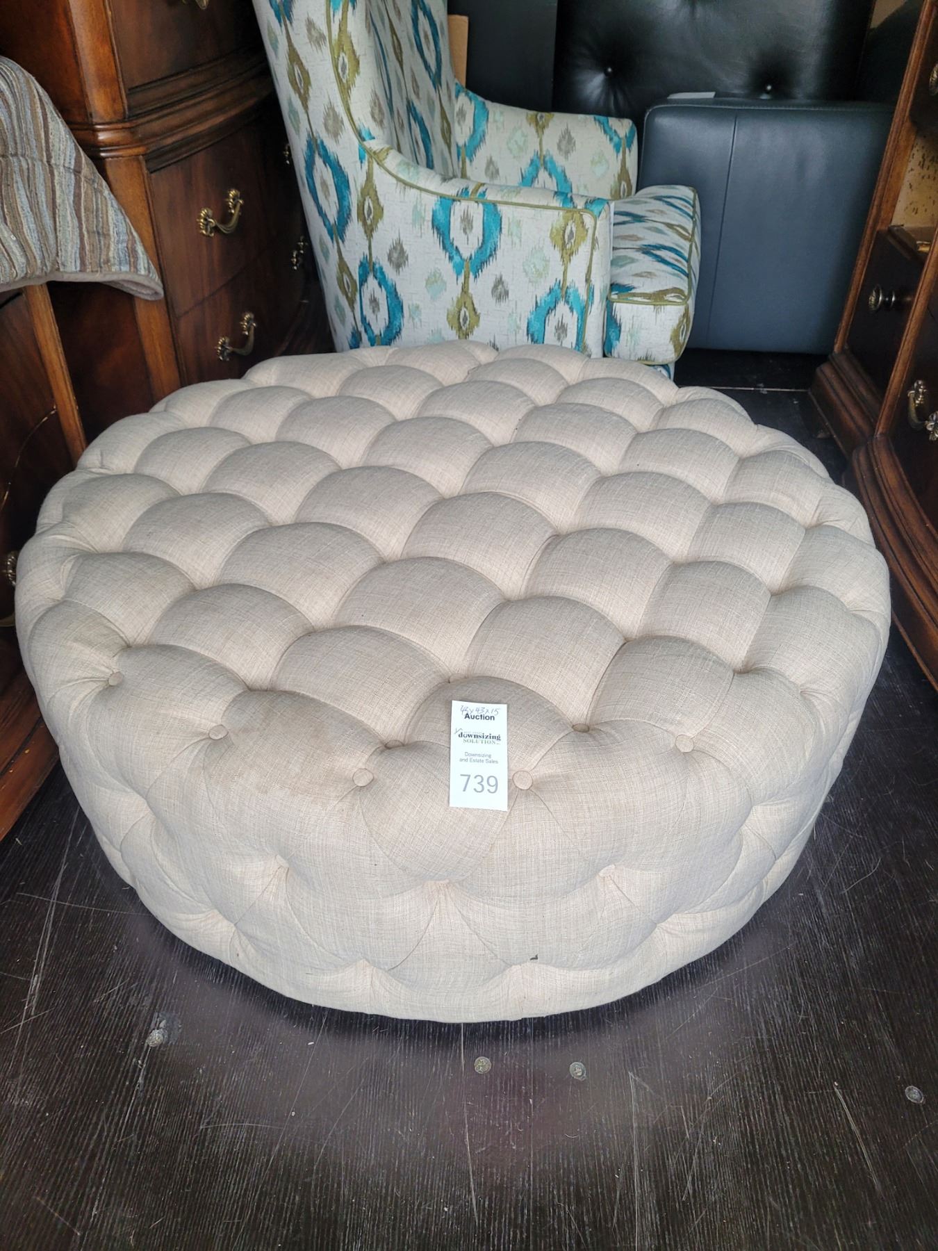 Round tuffed ottoman 43x43x15 note stain. Pickup at 11 am