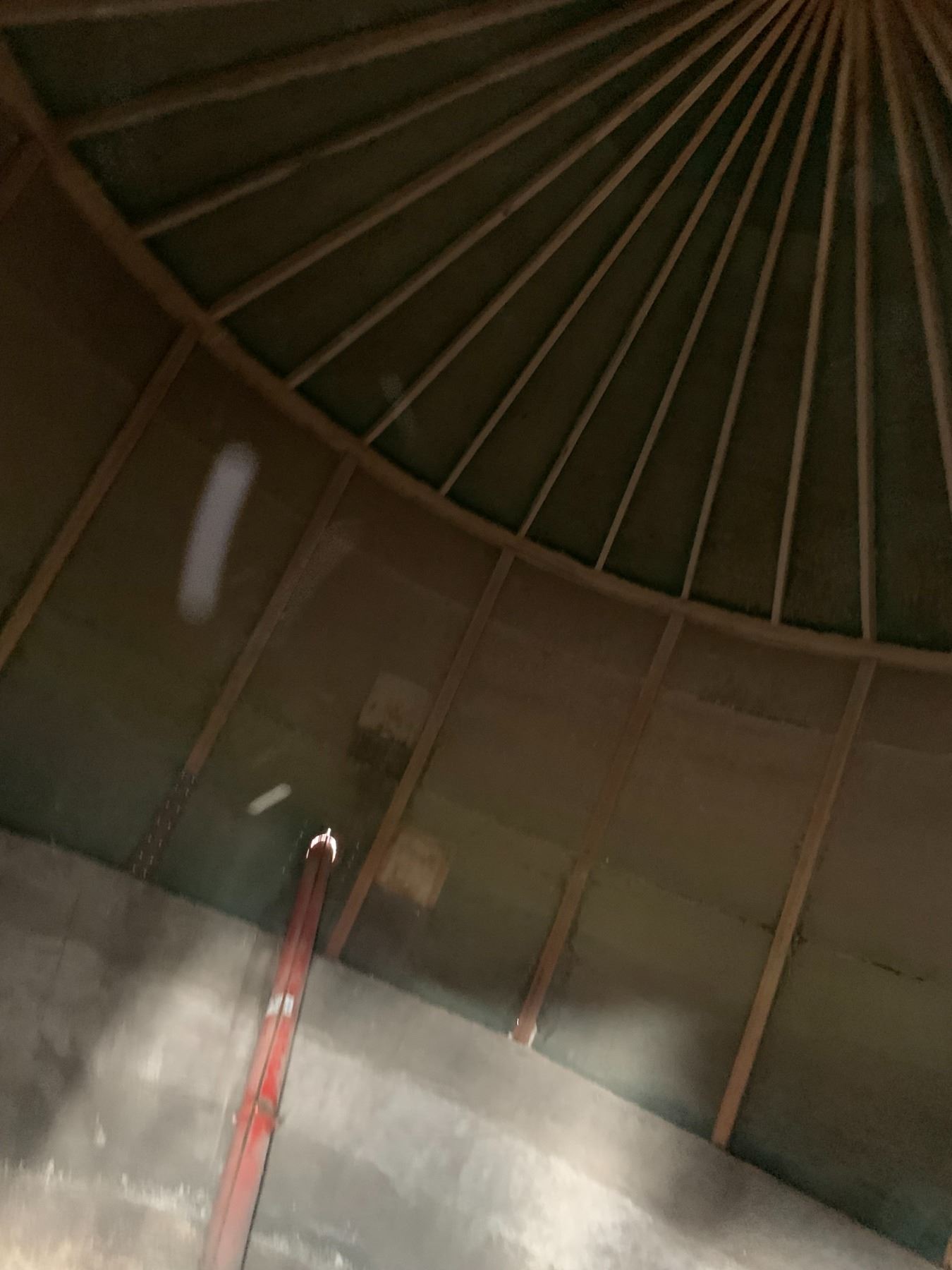 Round Wood Grain Bin on Concrete c/w auger system. Grain Bins to be Removed by Oct 1st. PH Jovi (780) 675-4332