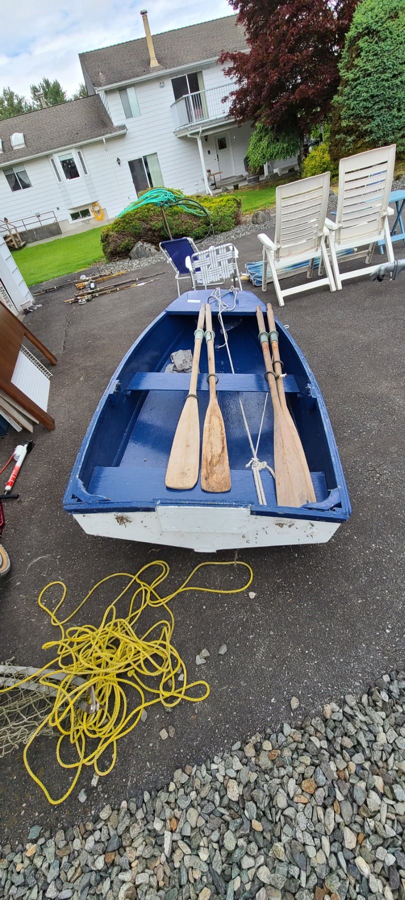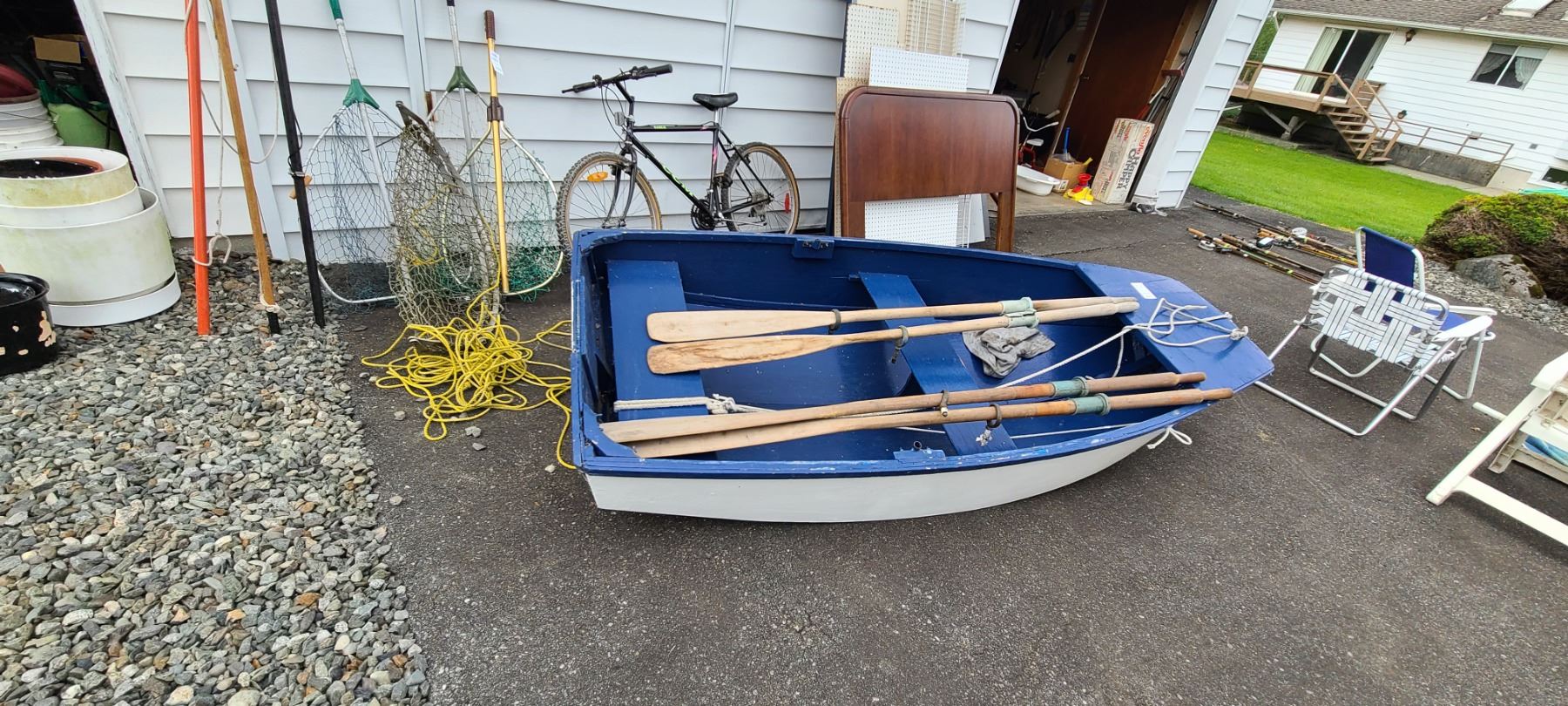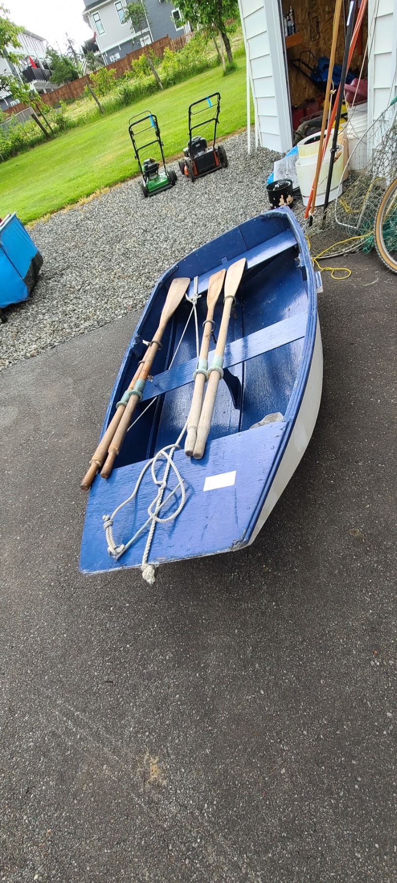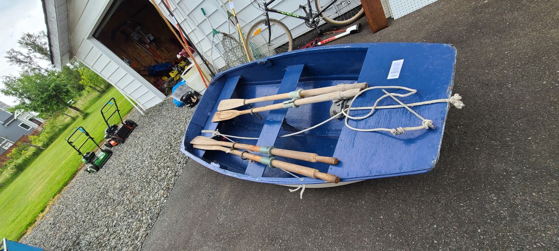 Wood rowboat 44x96x10, 4 oars, bring proper vehicle pickup 3 pm