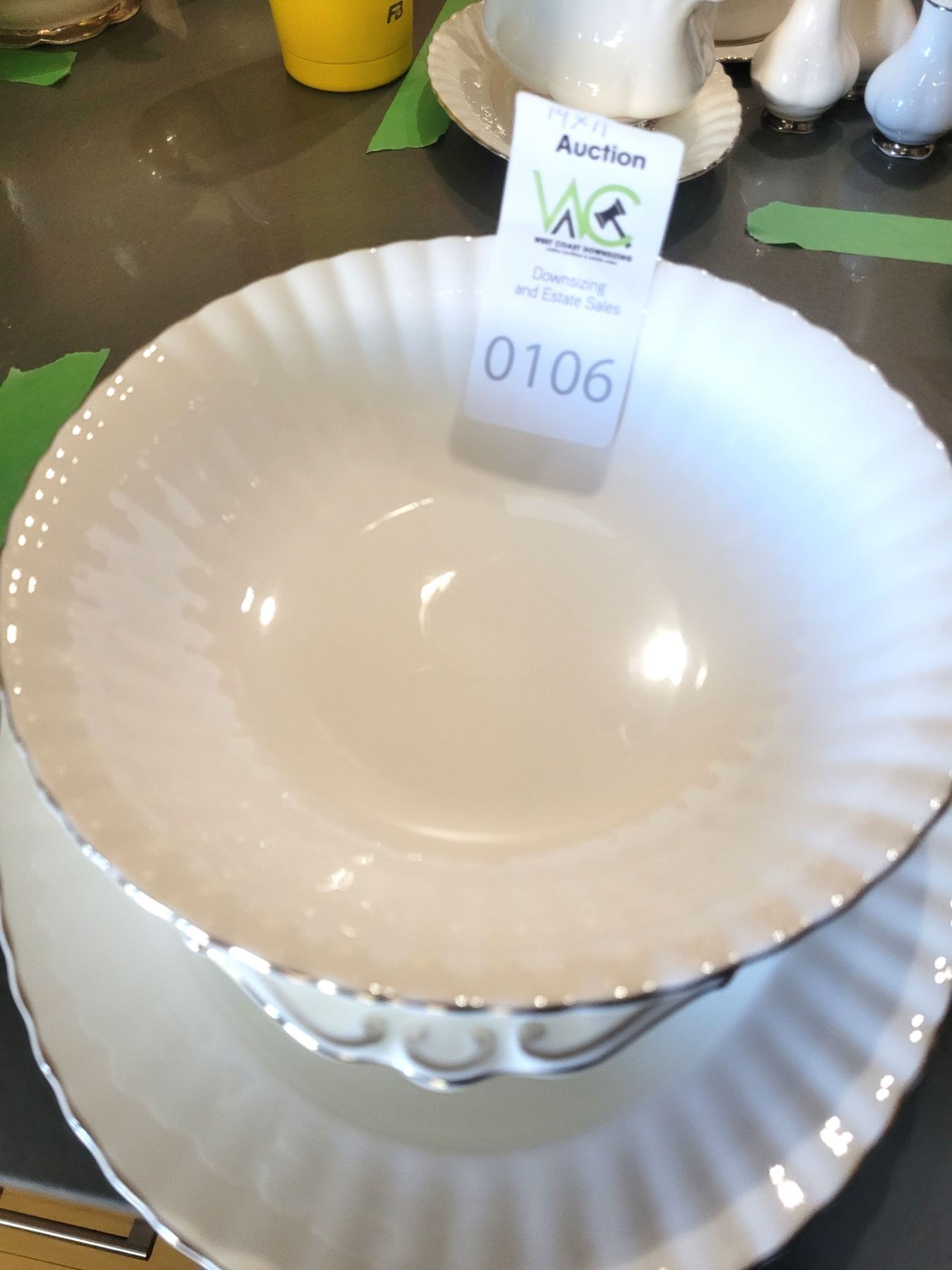 Serving bowl, platter, cake plate. Pick up 9-10. Bring packing materials