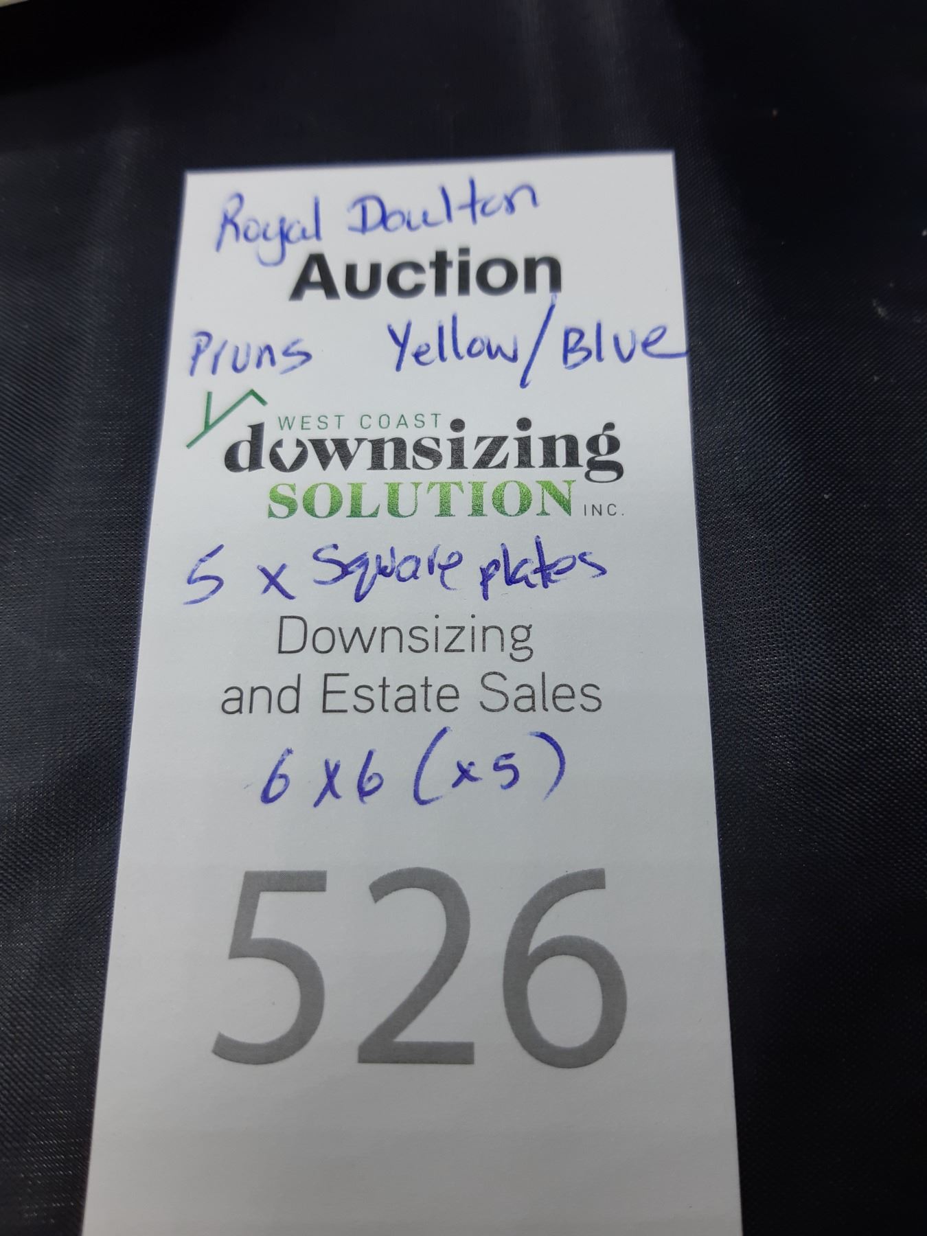 5 square plates 6x6" Bring packing material and pickup at 9 am