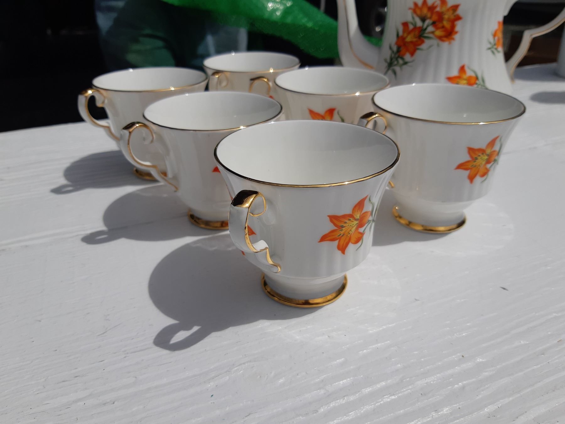 Royal Windsor Prairie Lily, teapot, 6 cups, cream and sugar. Pickup at 10 am.