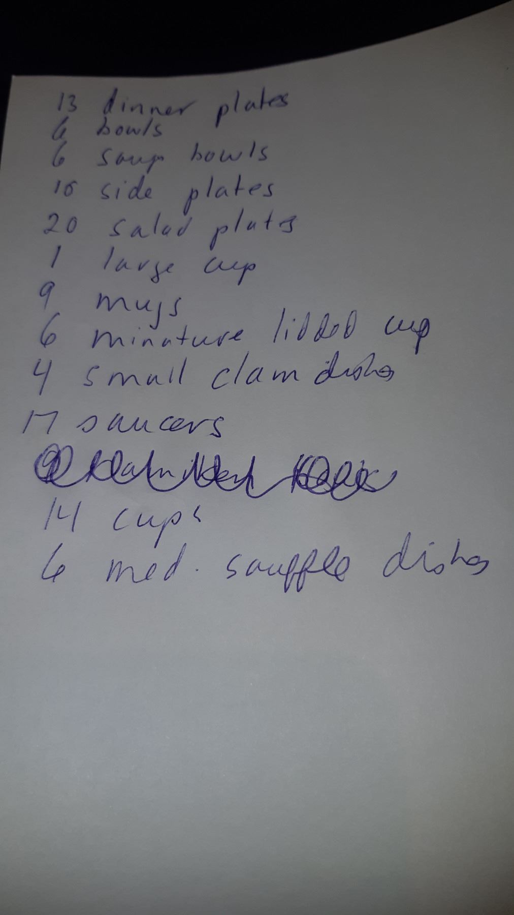 Large assortment approximateluy 116 pieces of dinnerware Bring packing and pickup at 9 am