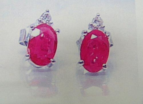 Ruby and Diamond Earrings, 14 K white gold- rubies are oval, faceted, approx. 1.05 carats, transparent, and medium red; diamonds are full cut, approx. 0.04 carats, SI1 clarity, and H color- estimated retail replacement cost $975 (12)