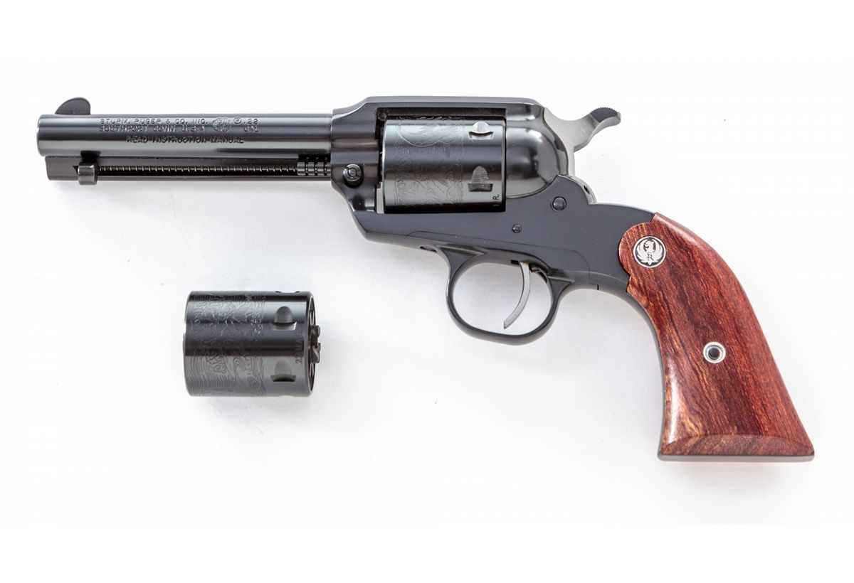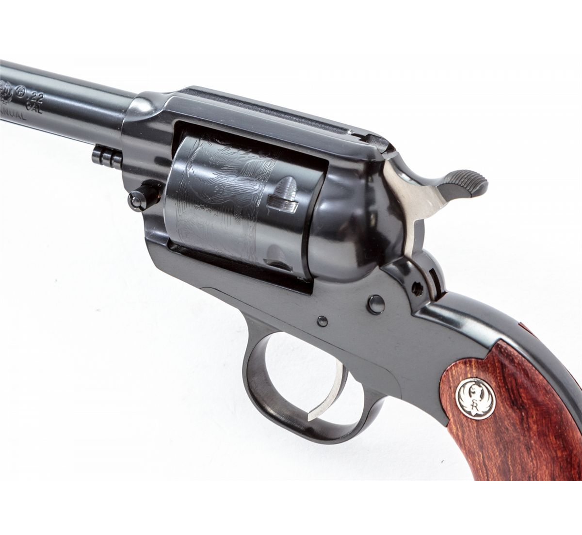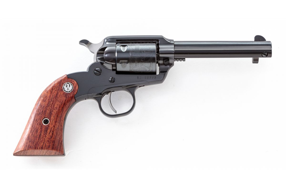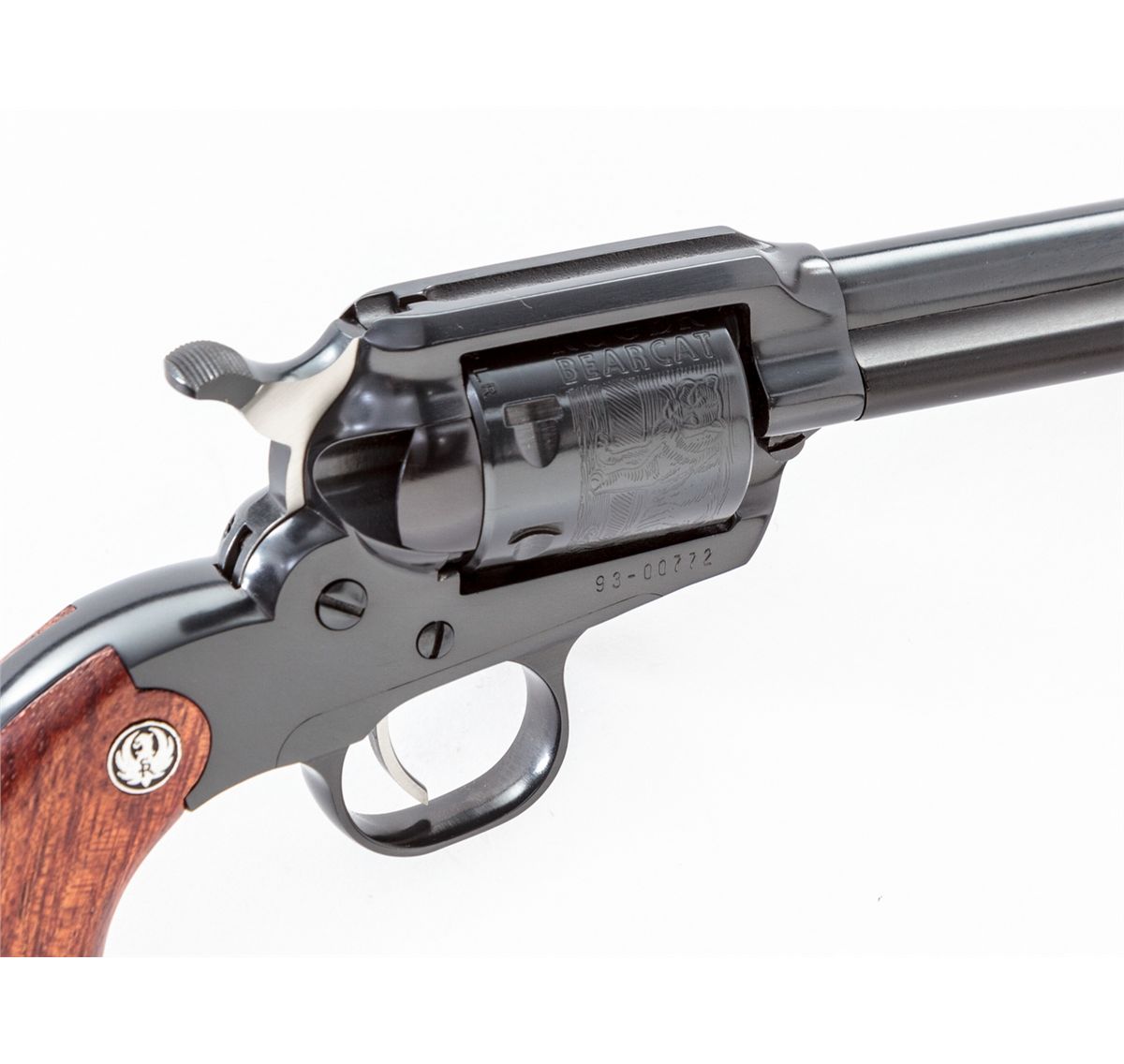 Ruger Convertible Bearcat Single Action Revolver, #93-00772, .22 LR/.22 mag. cal., 4'' barrel, blue finish, steel frame, two-piece walnut grips with Ruger medallions. Considered quite scarce as many were recalled. Condition is excellent, appearing new and unfired, in original box. Est.: $800-$1,200. (Modern)