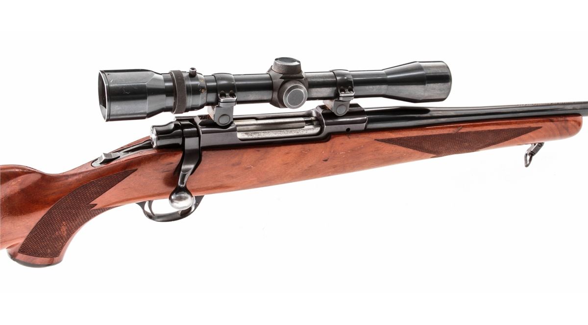 Ruger M77 Bolt Action Rifle, #70-85845, .270 cal., 22'' barrel, blue finish, checkered walnut stock, with 2.5-7x32 steel tube scope. Condition is very good showing moderate field use, with thinning to finish and scuffs and scratches to stock. Good action, very good bore and optics. Est.: $300-$500. (Modern)