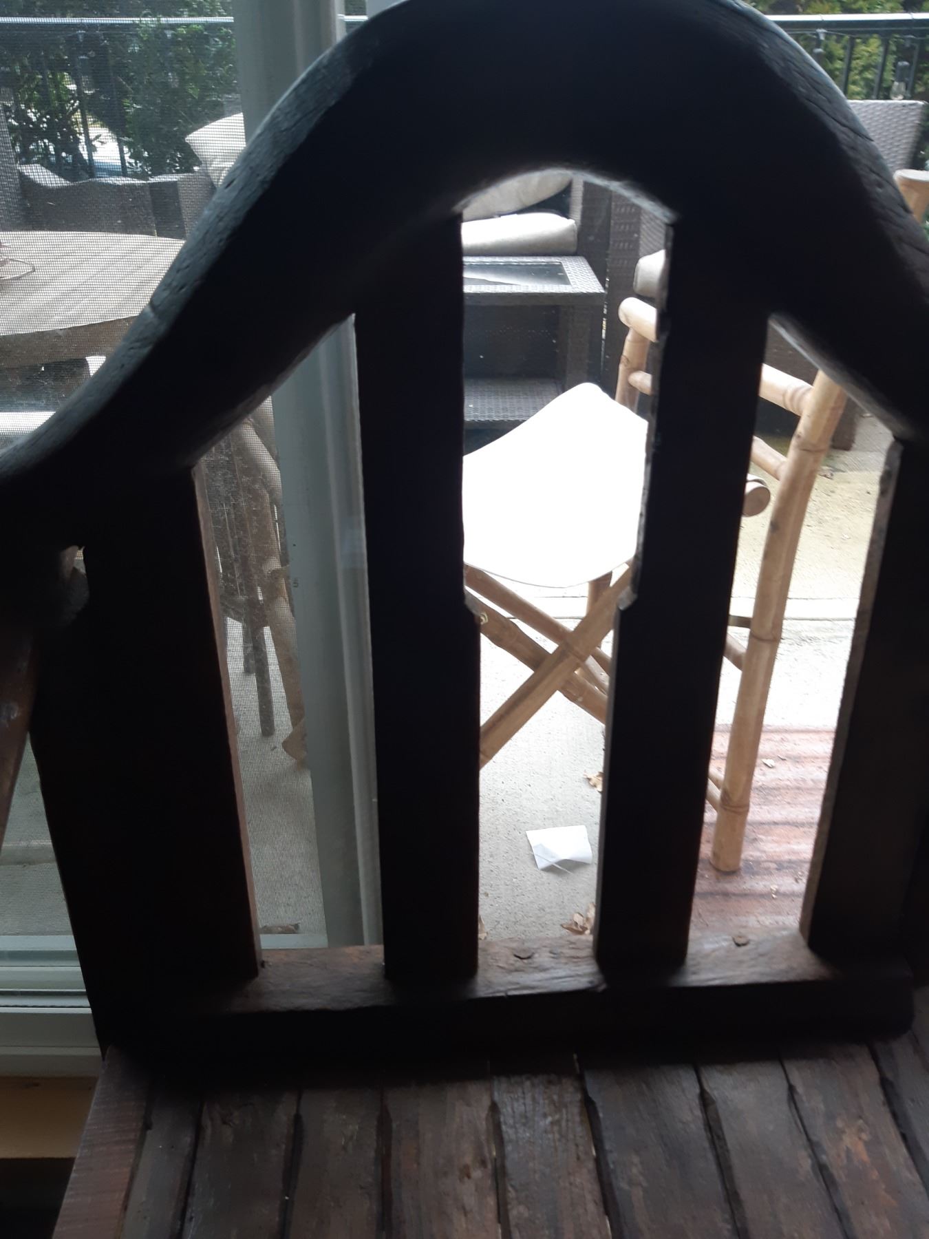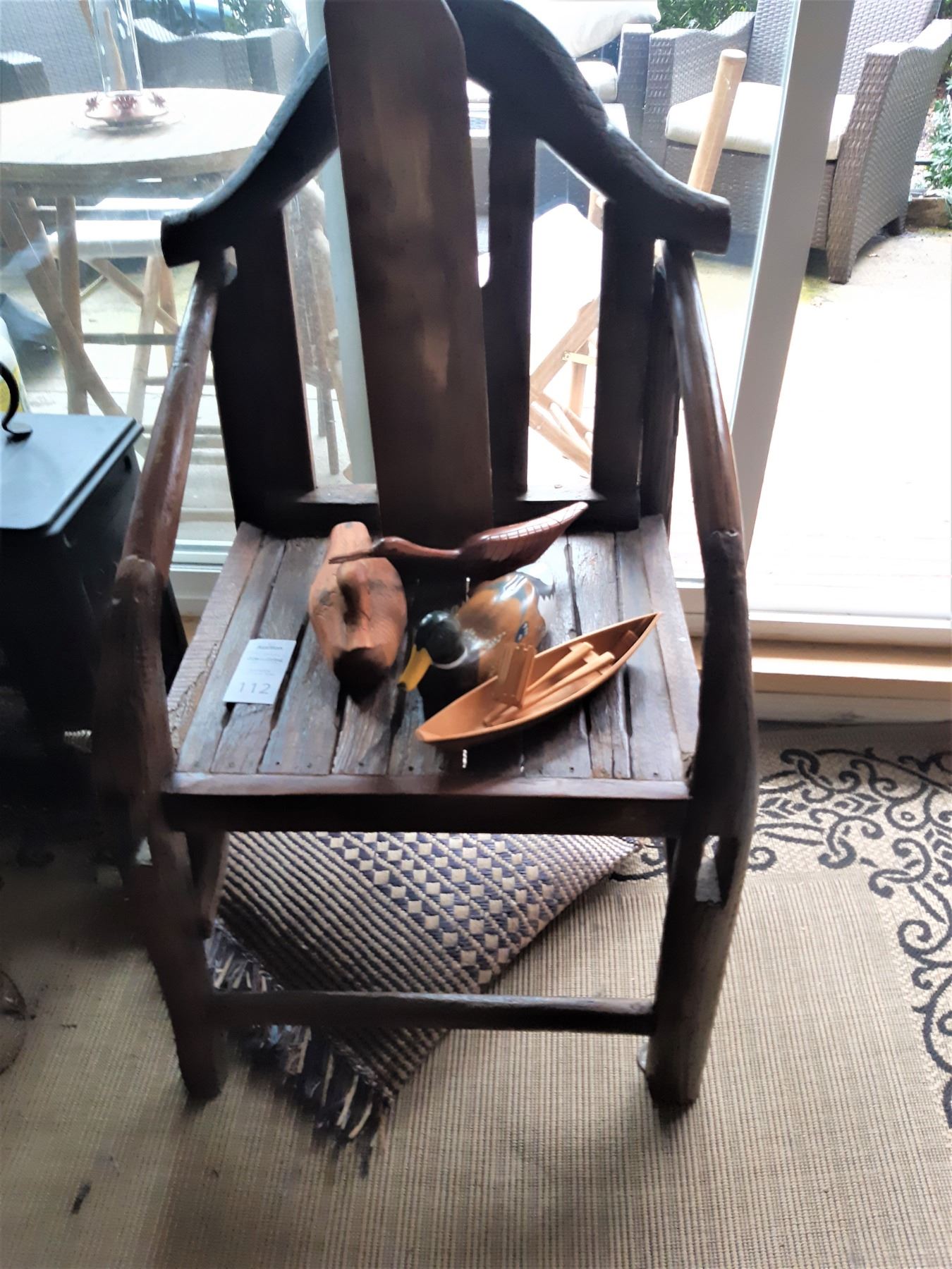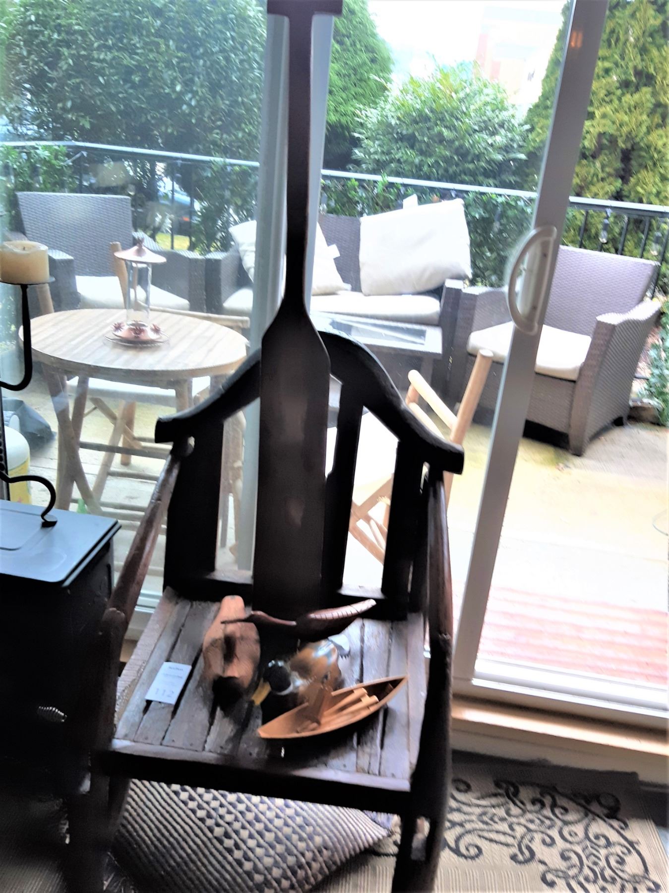 Lot includes Log chair 25x21x39 made in pieces, very heavy, 3 birds, canoe and a 47" oar. Pickup at 10 am.