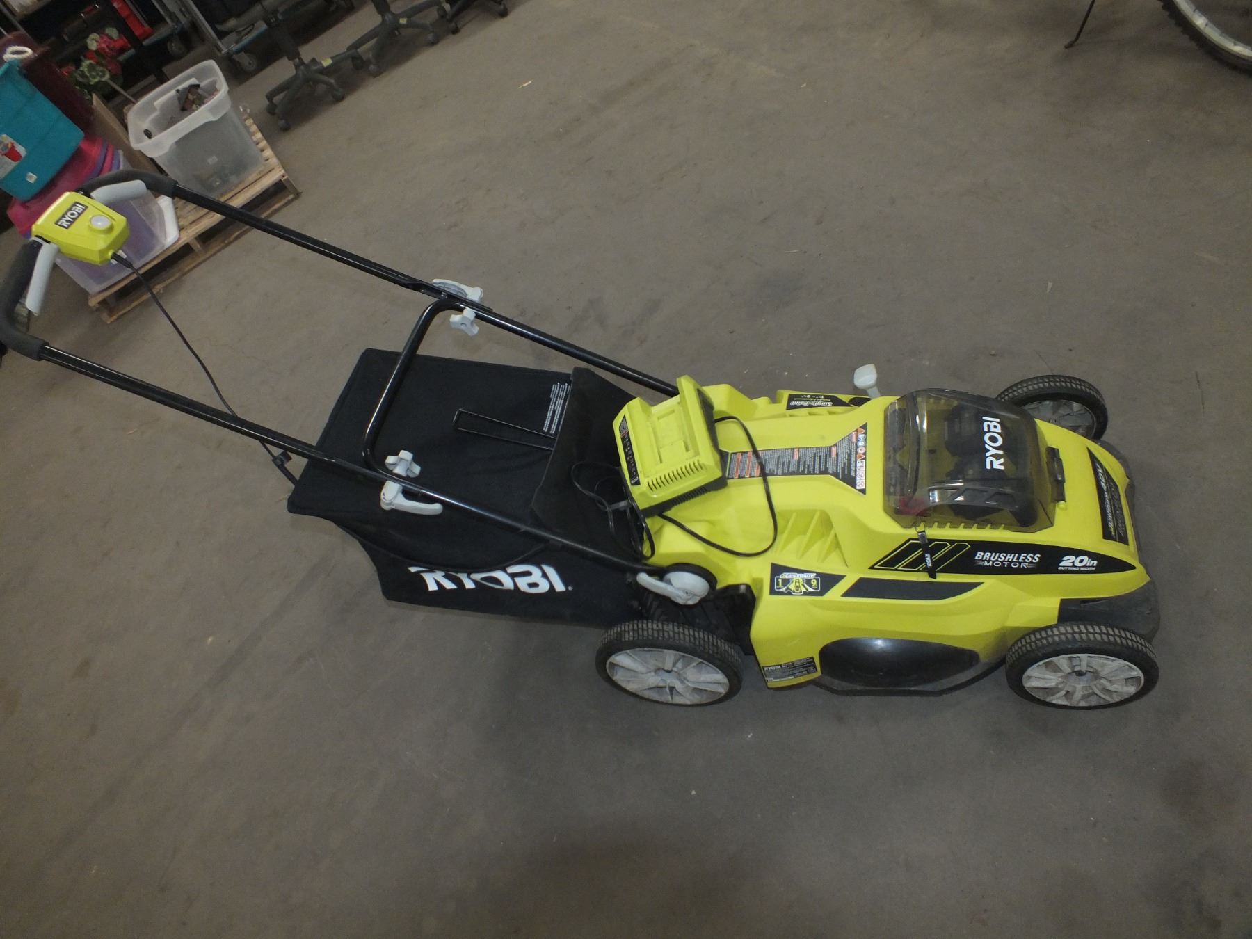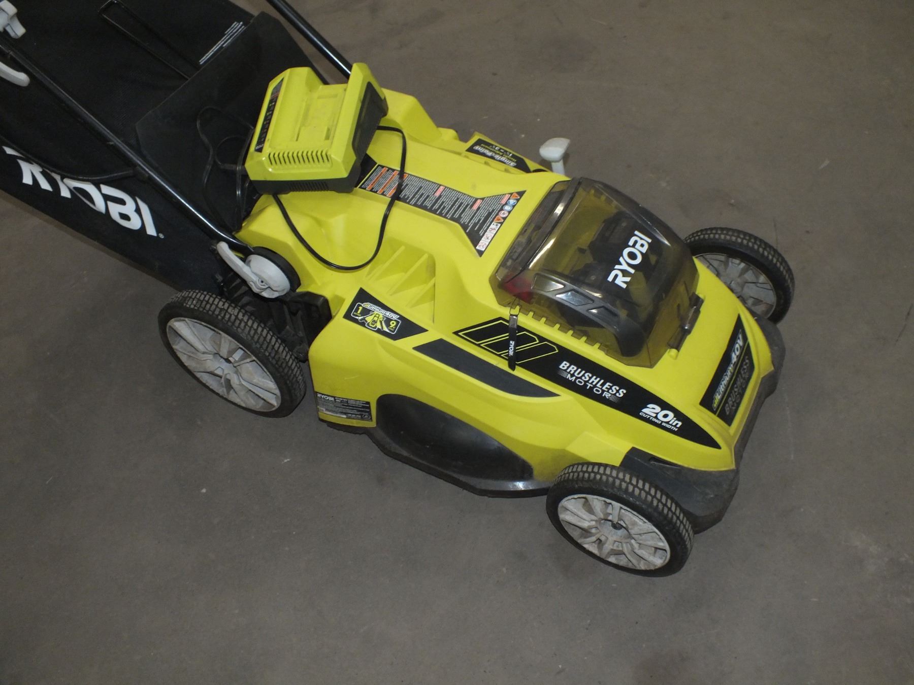 Ryobi 40 Volt Brushless Lawn Mower, comes with 2 batteries and 1 charger in good condition...used