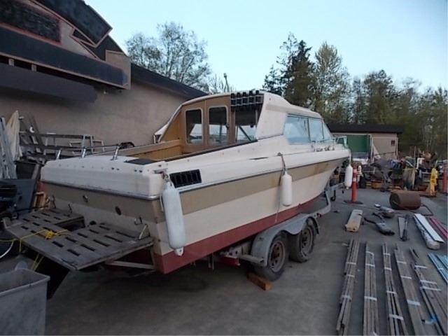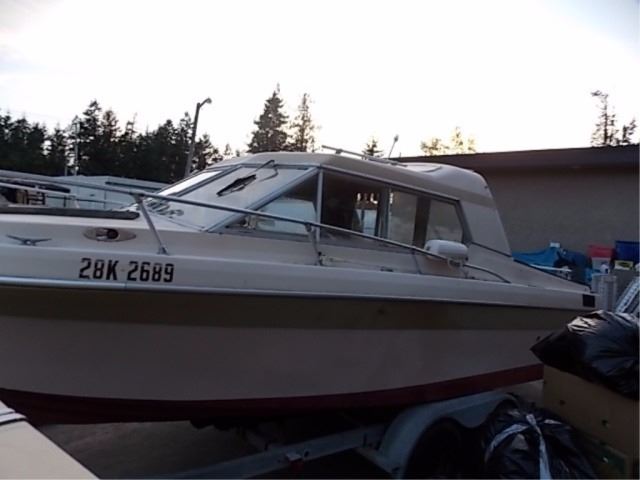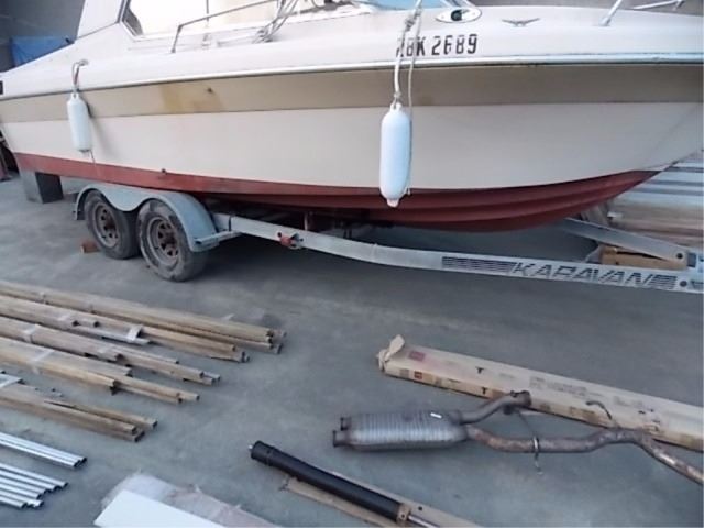S.T.O.A. - BOAT & TRAILER - 22' CUDDY BOAT INCLUDES BUT NOT LIMITED TO: 302 MERCURY CRUISER INBOARD MOTOR (recent ignition replaced and tuned up - has reciept) 7.5 MERCURY KICKER, RADIO, FISH FINDER, COMPASS BELLOW HAS SMALL LEAK - NEEDS REPAIR/REPLAC