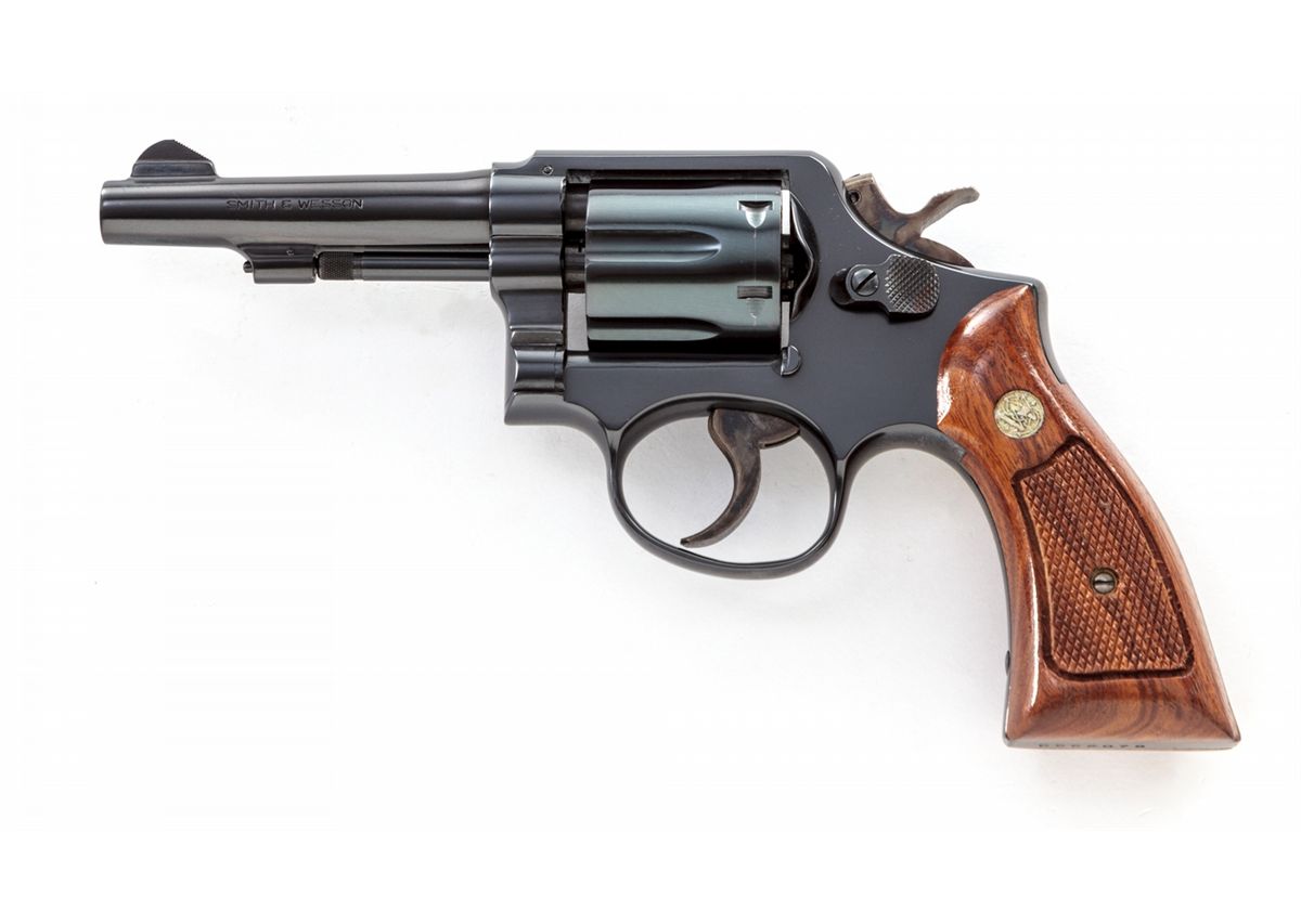 Smith & Wesson Model 10-5 Double Action Revolver, #D862078, .38 Spec. cal., 4'' barrel, blue finish, factory checkered walnut grips with medallions. Condition is excellent, appearing near new, with just minor handling marks. Est.: $500-$750. (Modern)