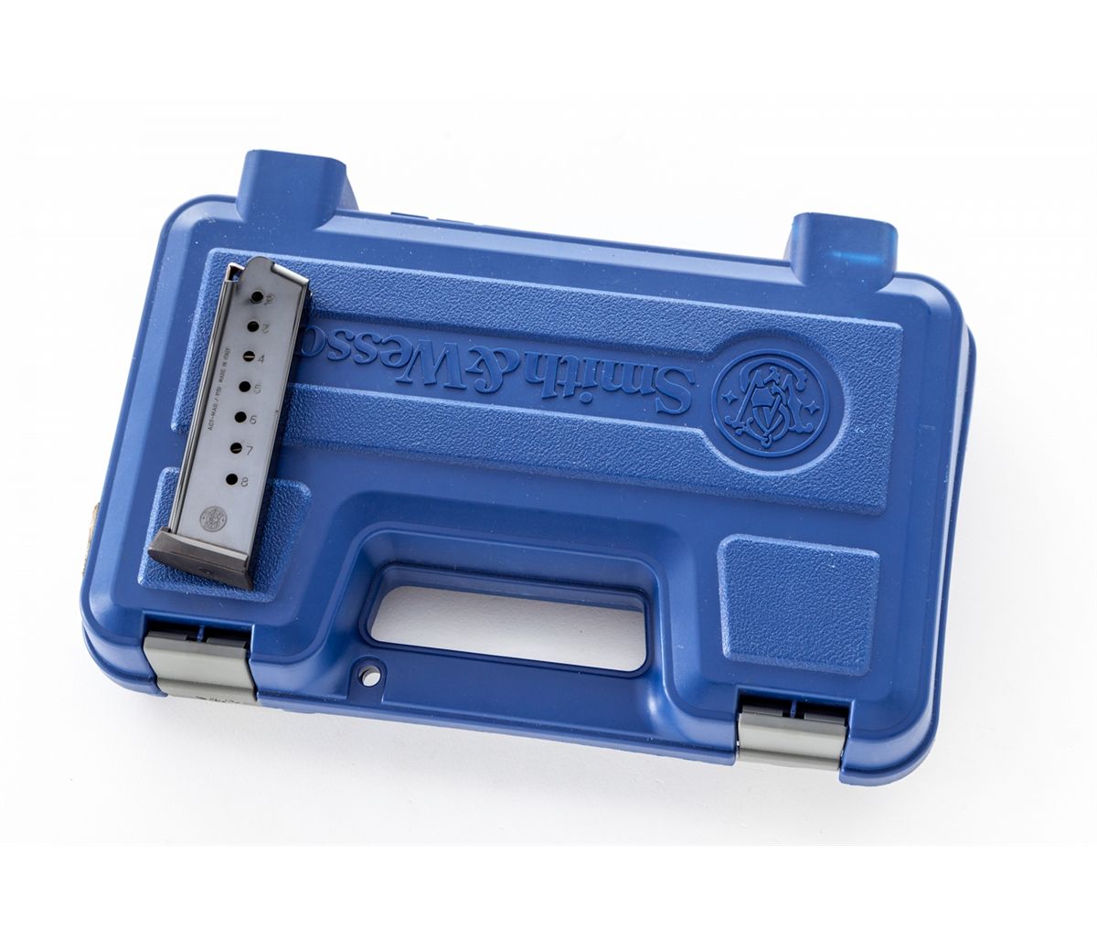 Smith & Wesson Model 1911 PD Gunsight Edition Semi-Automatic Pistol, #FSP0563, .45 ACP cal., 4'' barrel, matte finish, Novak style sights, with laser cut S&W/Gunsight logo hardwood grips. In original blue S&W hard case, complete with two magazines. Condition is excellent, appearing as new and unfired. Est.: $800-$1,200. (Modern)