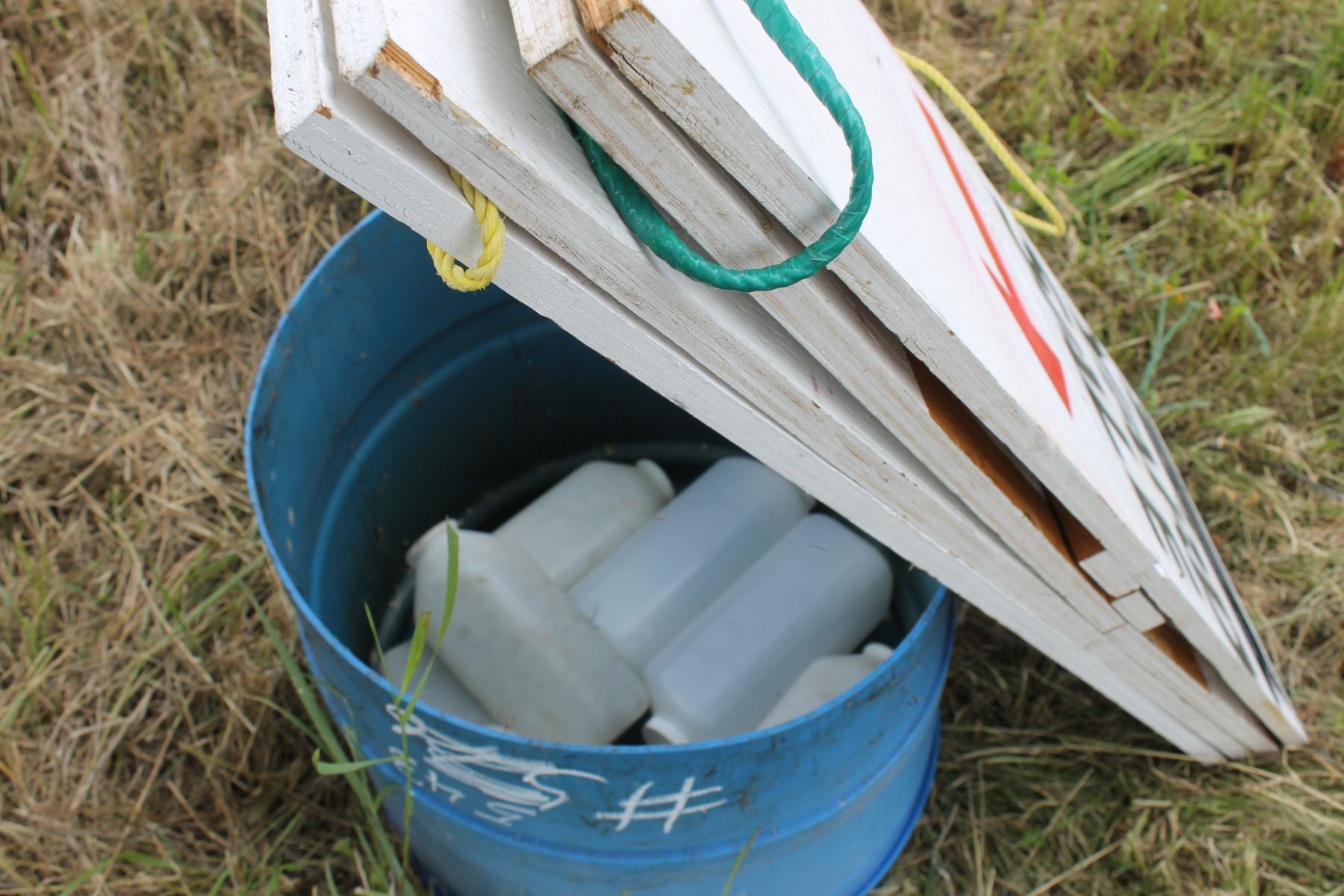 SANDWICH BOARD SIGNS, BLUE OPEN BARREL, BUMPER