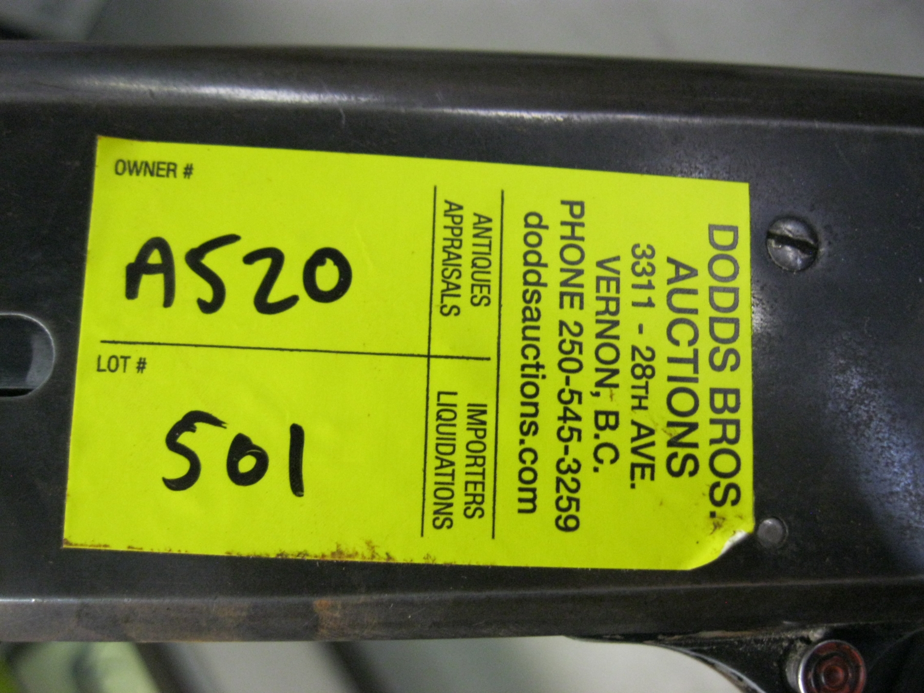 Attendance at the auction preview, or removal of purchased lots by purchaser/bidders and guests is done at their sole risk. Dodds Auction assumes no risk or liability, statutory, common law or otherwise whatsoever for the safety of those attending at the auction premises.